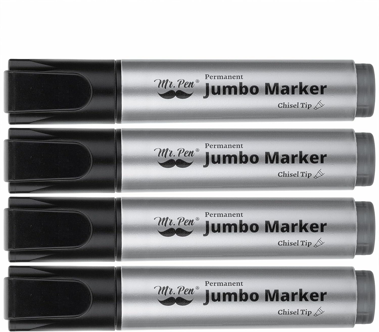 Jumbo Permanent Markers, 4 Pack, Chisel Tip, Black - Thick, Wide Tip, Large Size