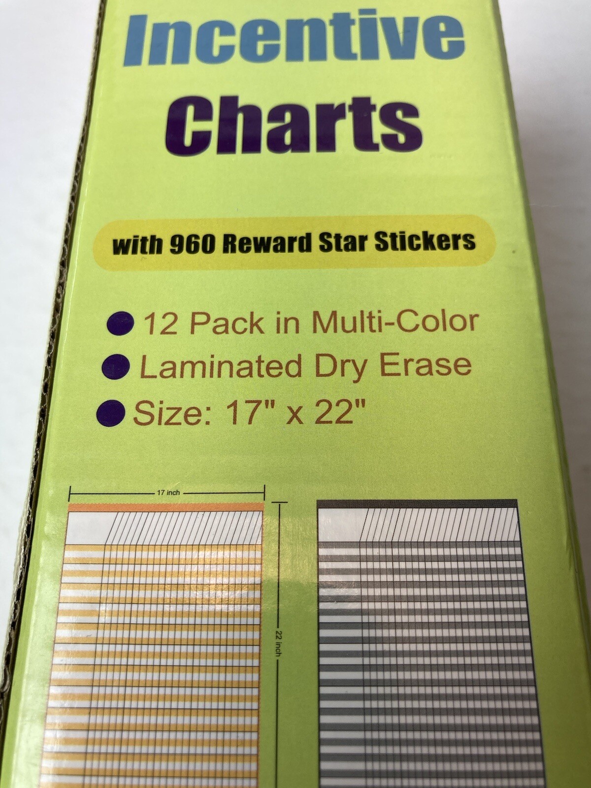 Youngever 12 Pk Multi-Color Laminated Dry Erase Incentive Chart with 900 Sticker