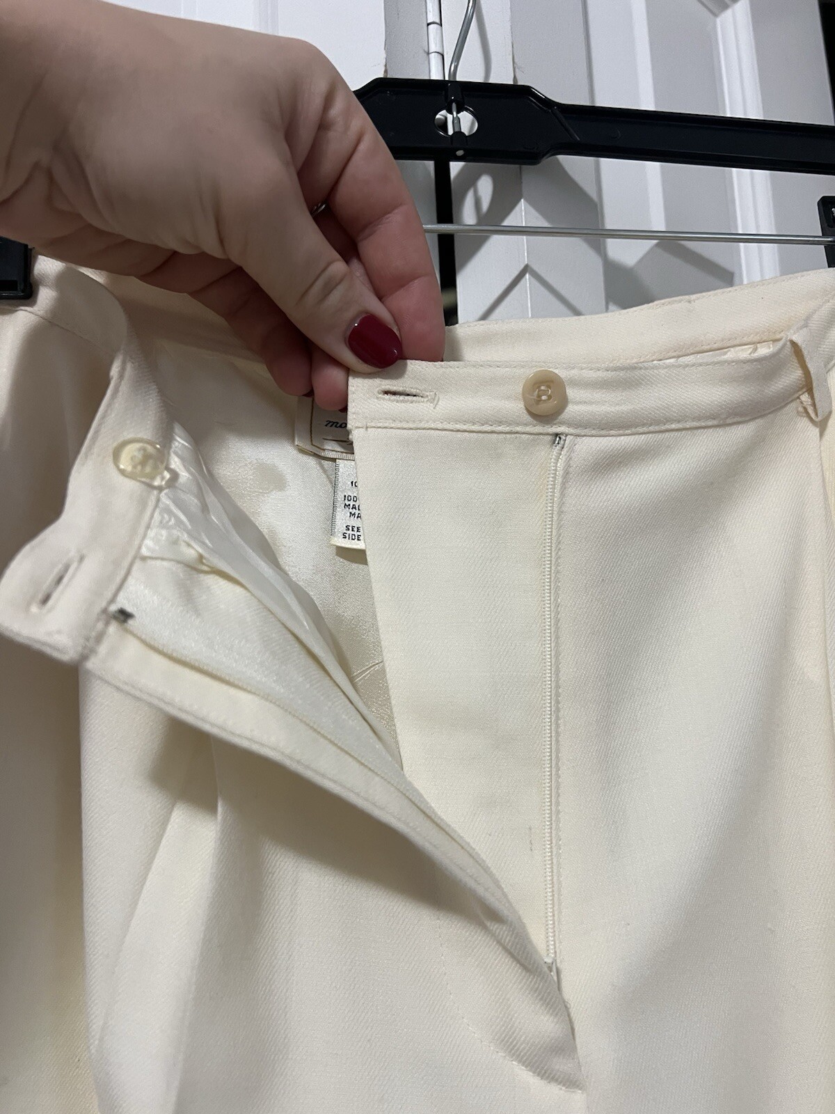 как выглядит Vintage 100 Wool Cream Tapered Trousers Size 8 фото
