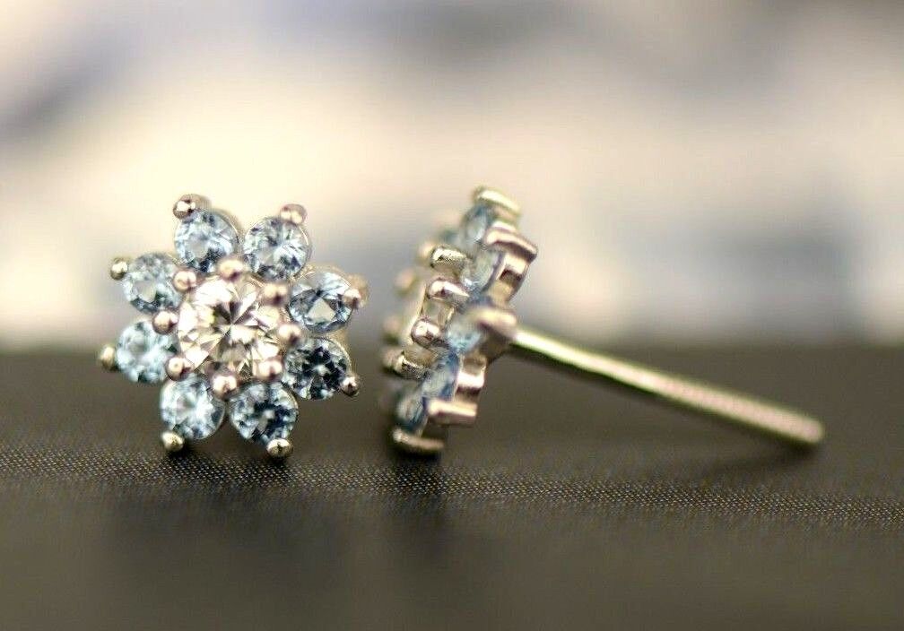 как выглядит 14k White Gold Flower Colored CZ Earrings фото