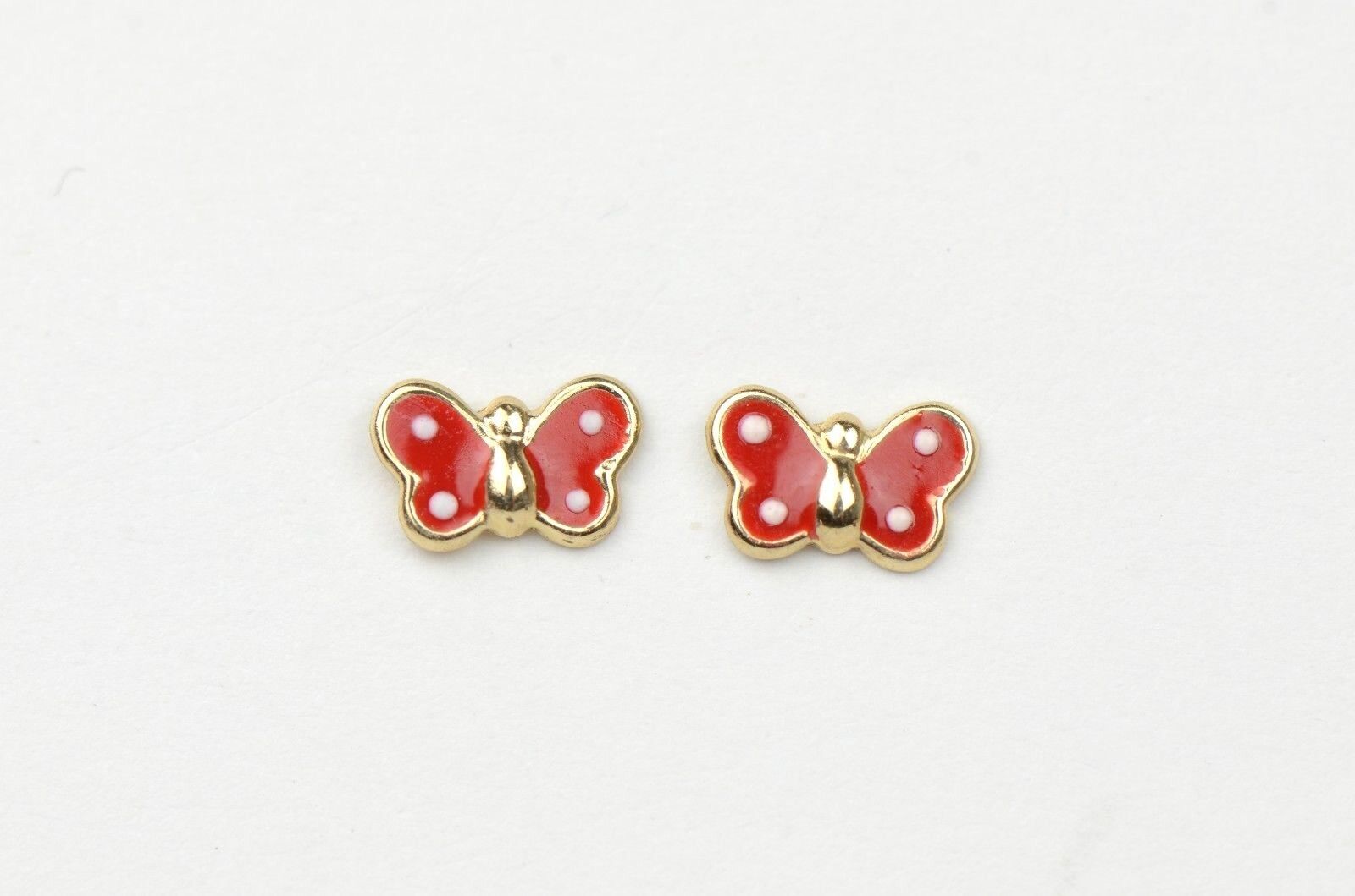 14k Yellow Gold Enamel Butterfly Baby earrings with Screw Back