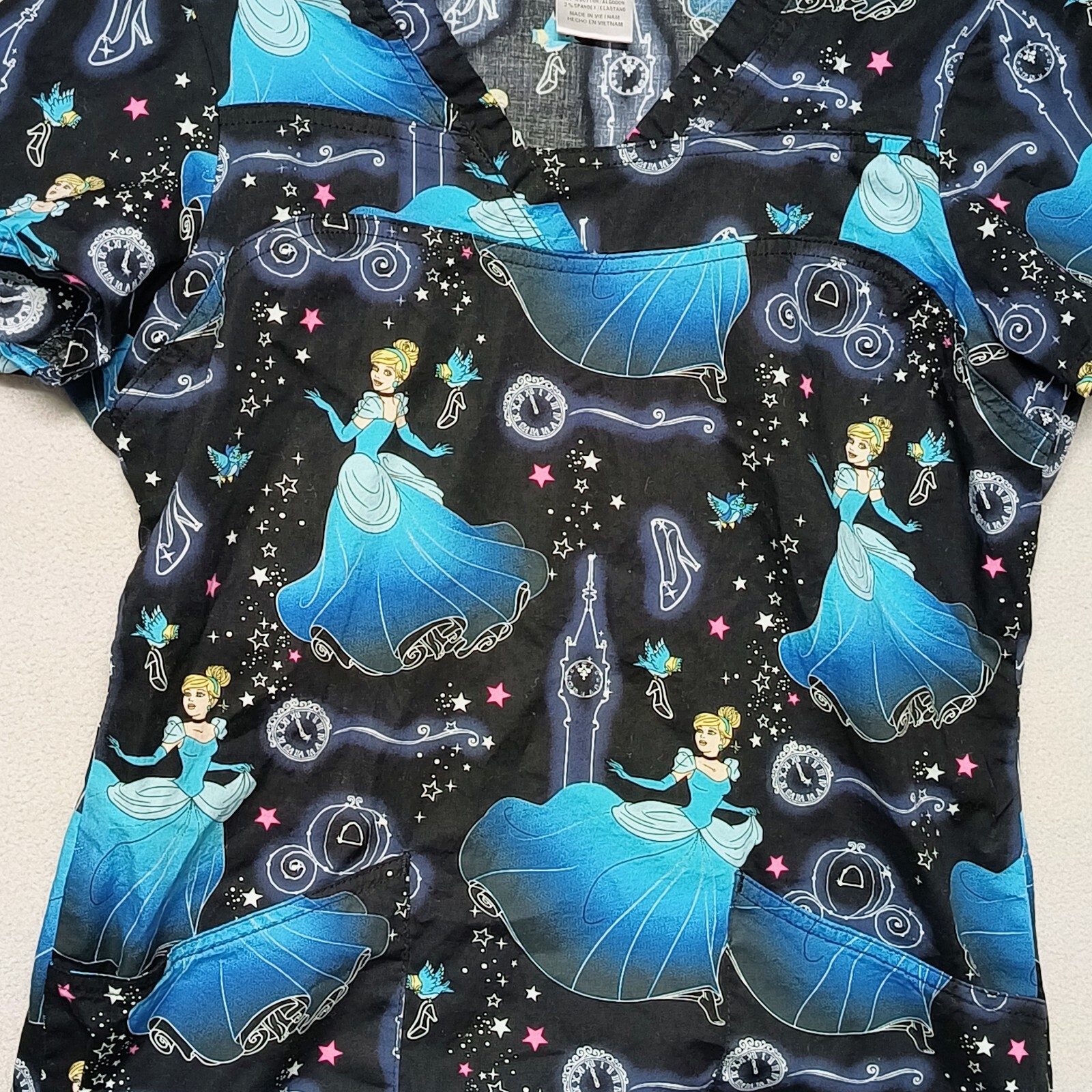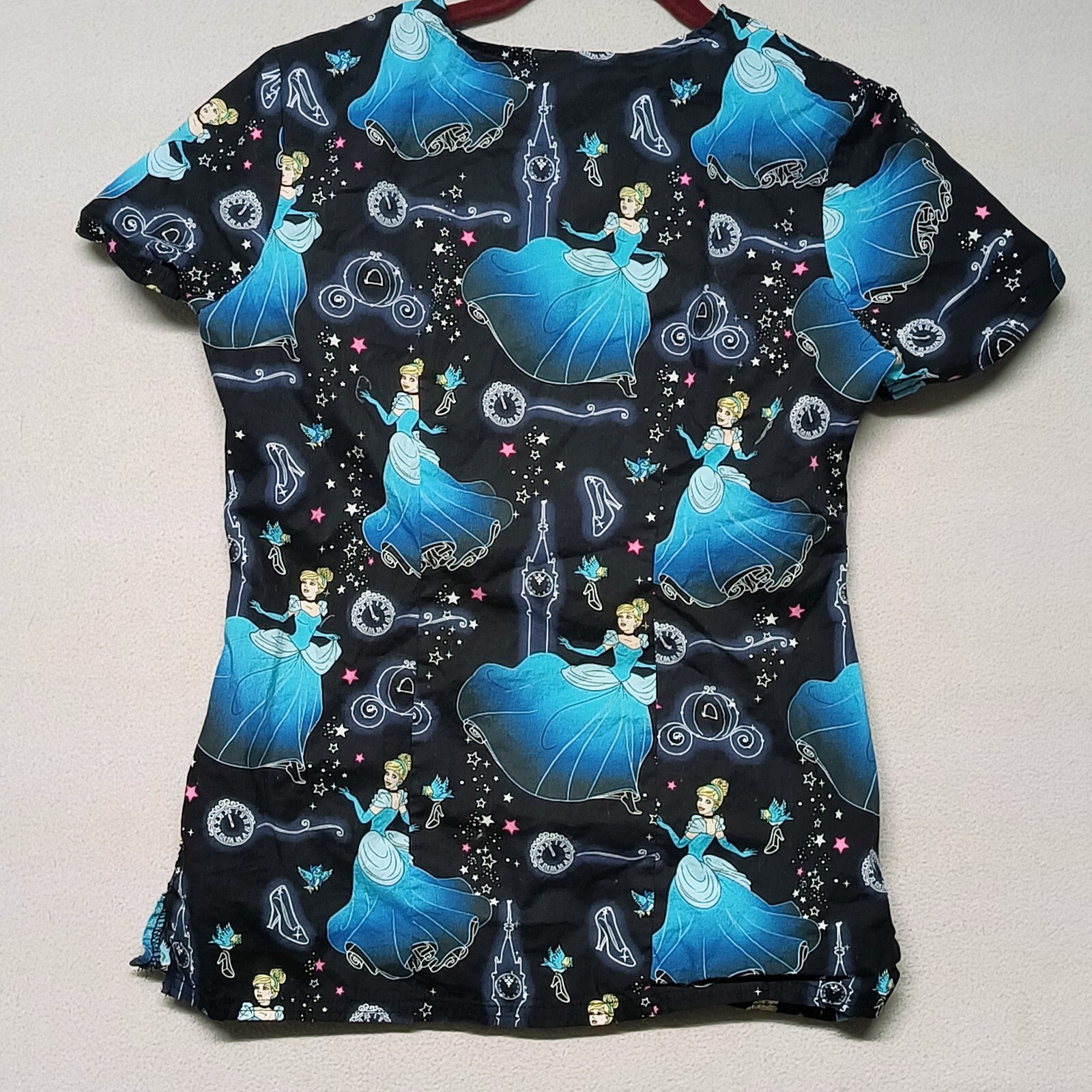как выглядит Disney Scrub Top Cinderella Size XS V Neck Front Pockets Black TF641 PRSO фото