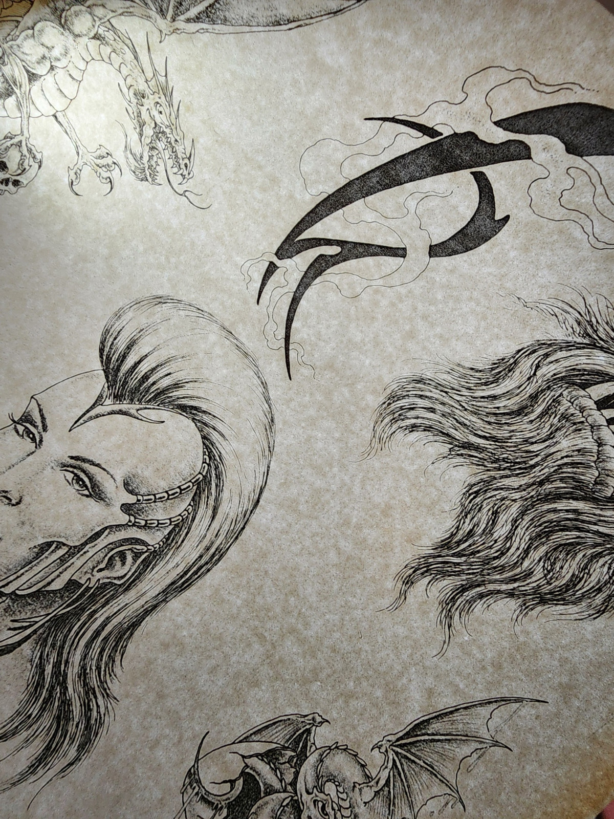как выглядит 1990 VINTAGE Jack Rudy Traditional Tattoo Flash Sheet Girl, Dragon, Cyclops фото