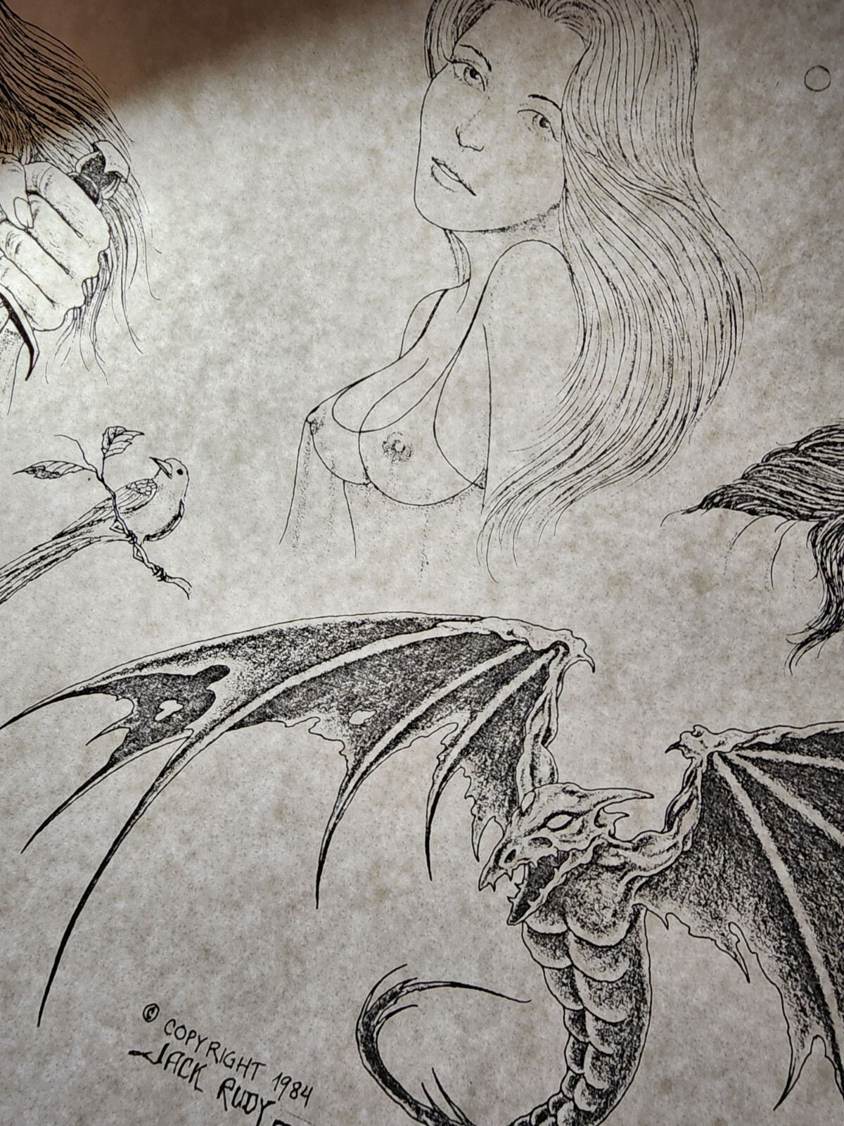 1984 VINTAGE Jack Rudy Traditional Tattoo Flash Sheet Tattooland Biker, Jesus