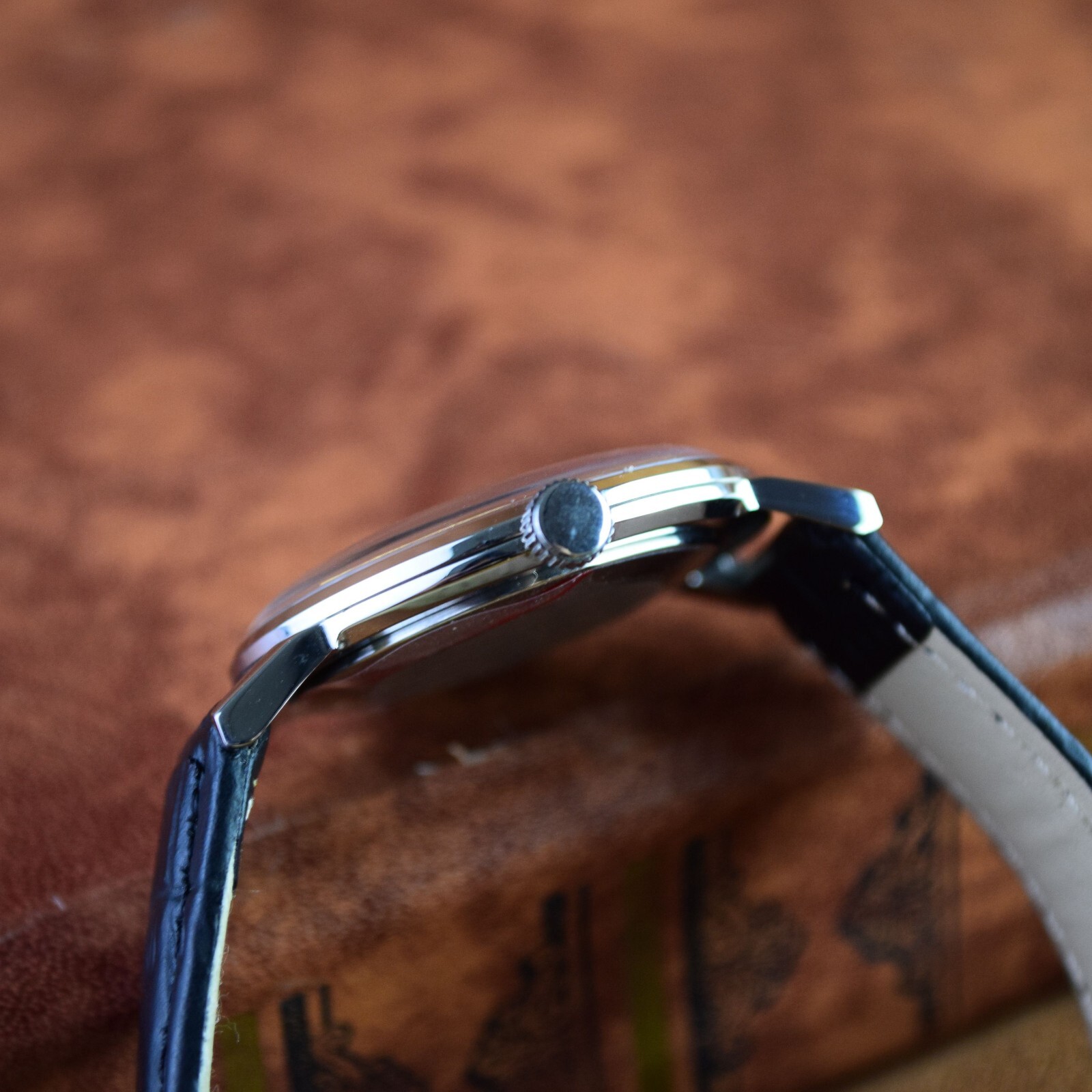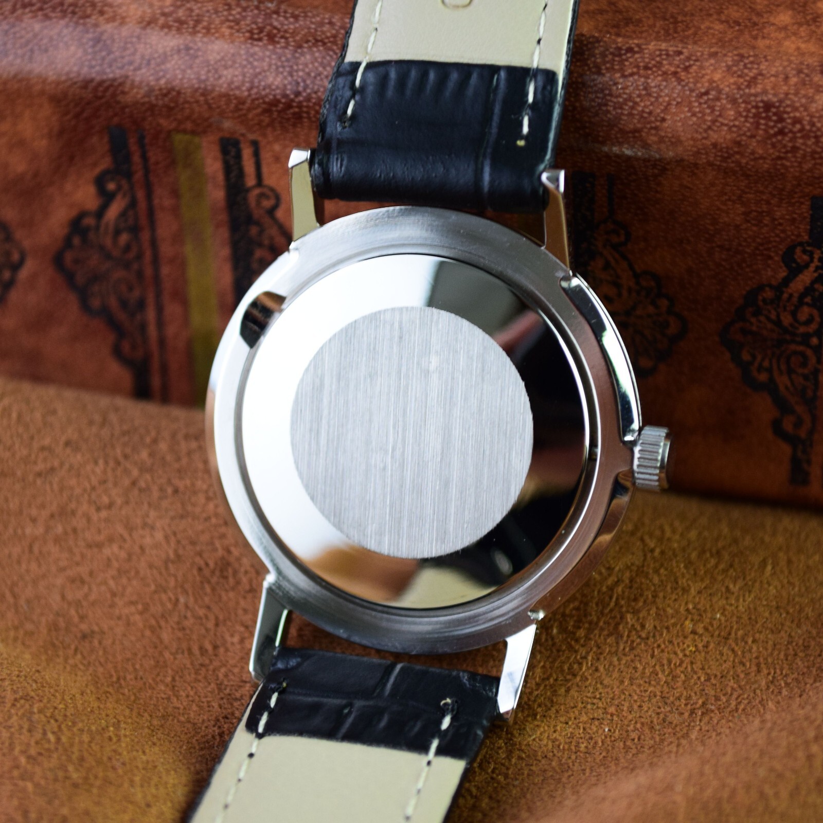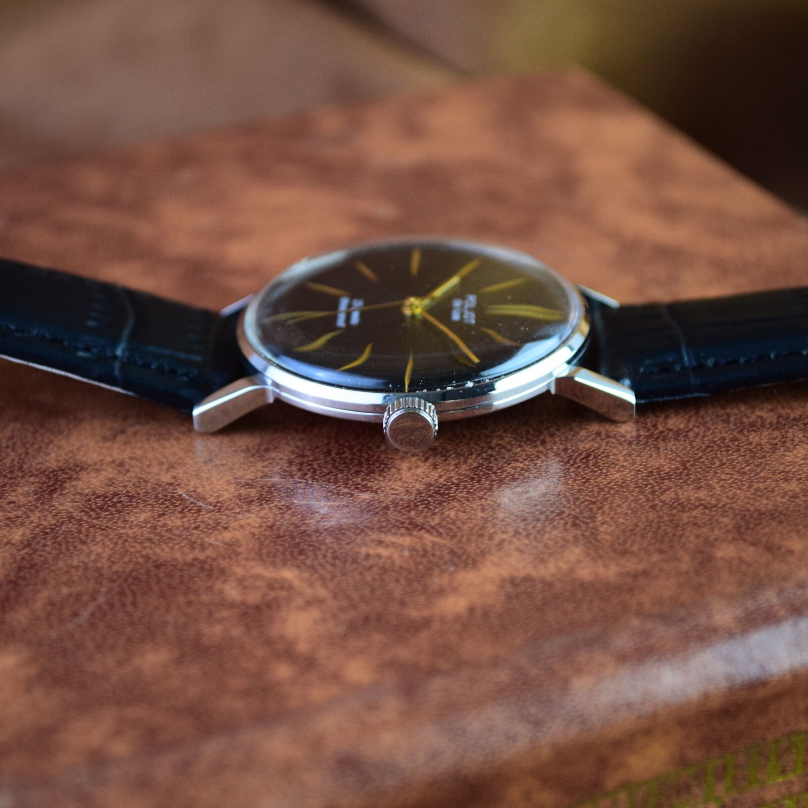 Vintage Men s Wristwatch NOS Poljot De LUXE Ultra Slim Soviet Watch Black Dial
