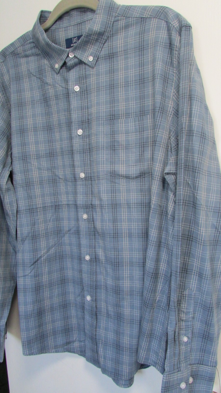 как выглядит NEW Mens L 42-44 Classic Fit LS Blue Button Poplin Plaid Shirt By George фото