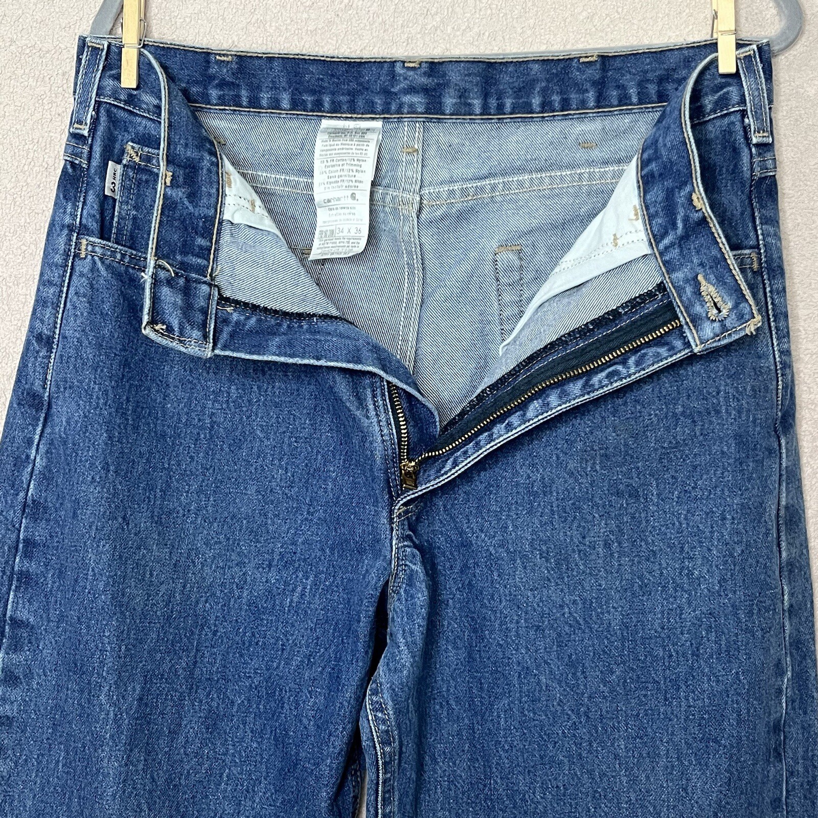 как выглядит Carhartt Flame Resistant Straight Leg Denim Blue Jeans-Men s 34x36-Workwear-EUC фото