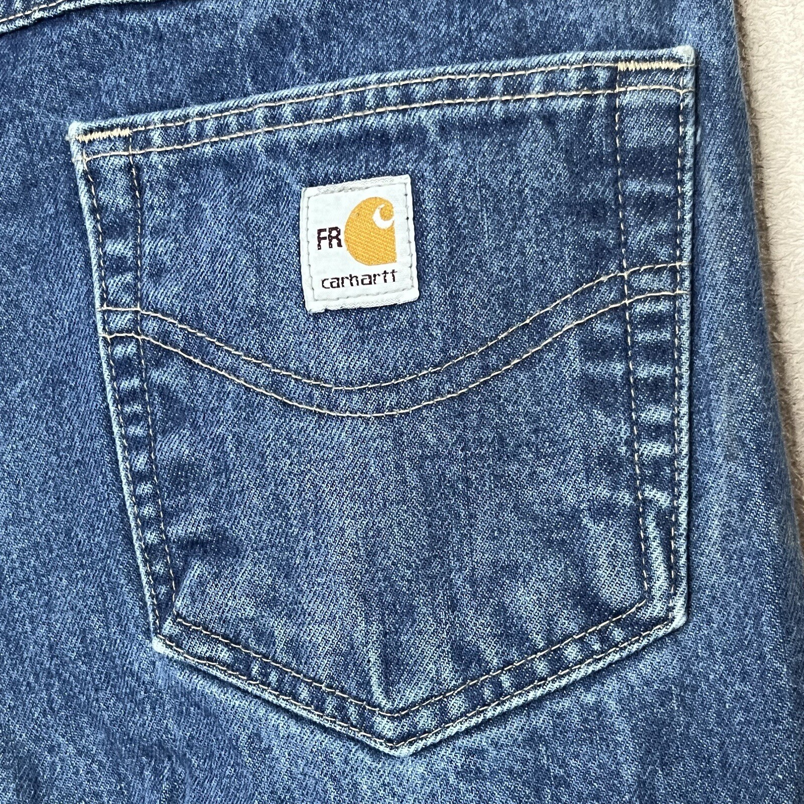 Carhartt Flame Resistant Straight Leg Denim Blue Jeans-Men s 34x36-Workwear-EUC
