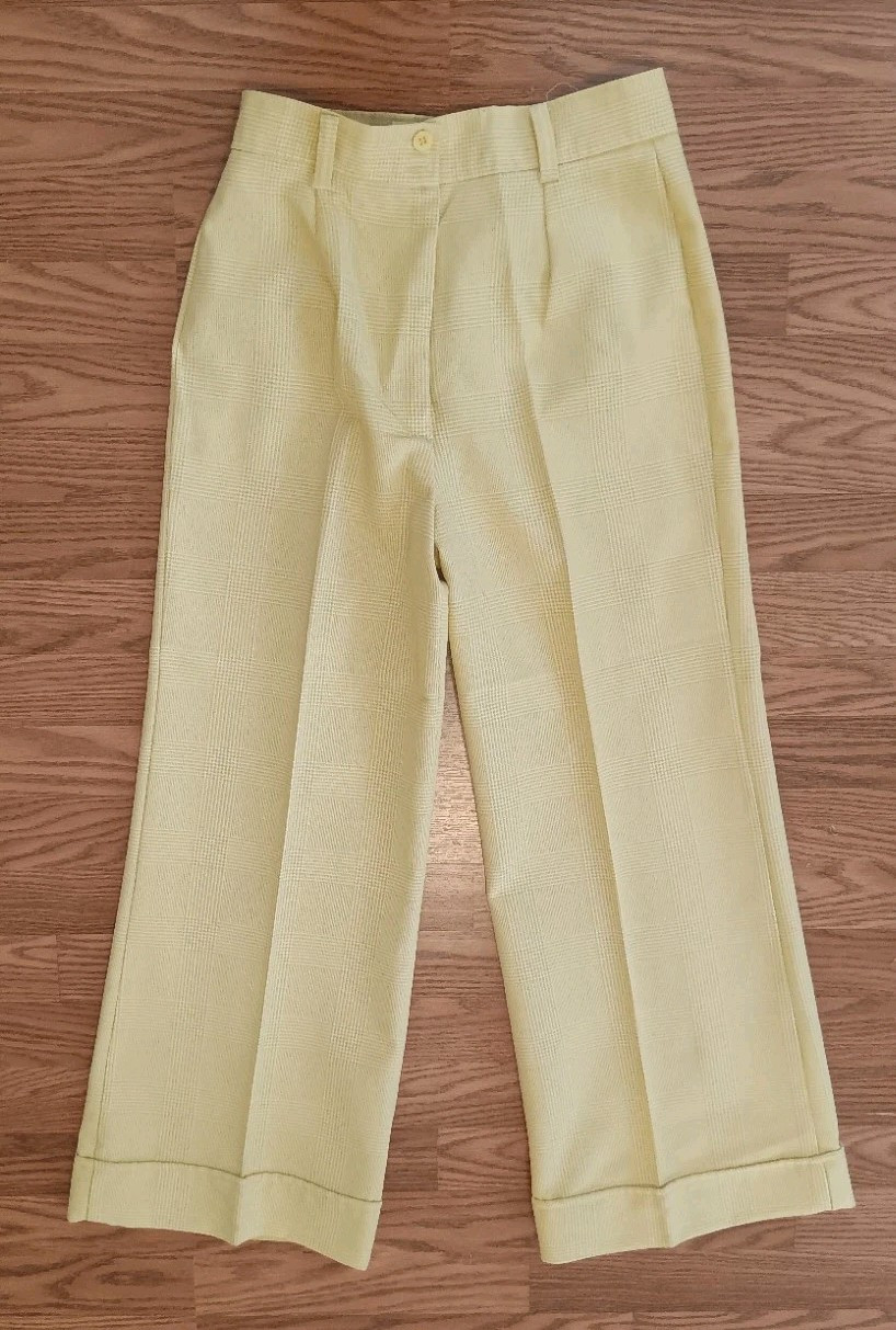 как выглядит 1970s Yellow Houndstooth Wide Leg Trousers 28" Waist Juniors Disco Pants Vintage фото
