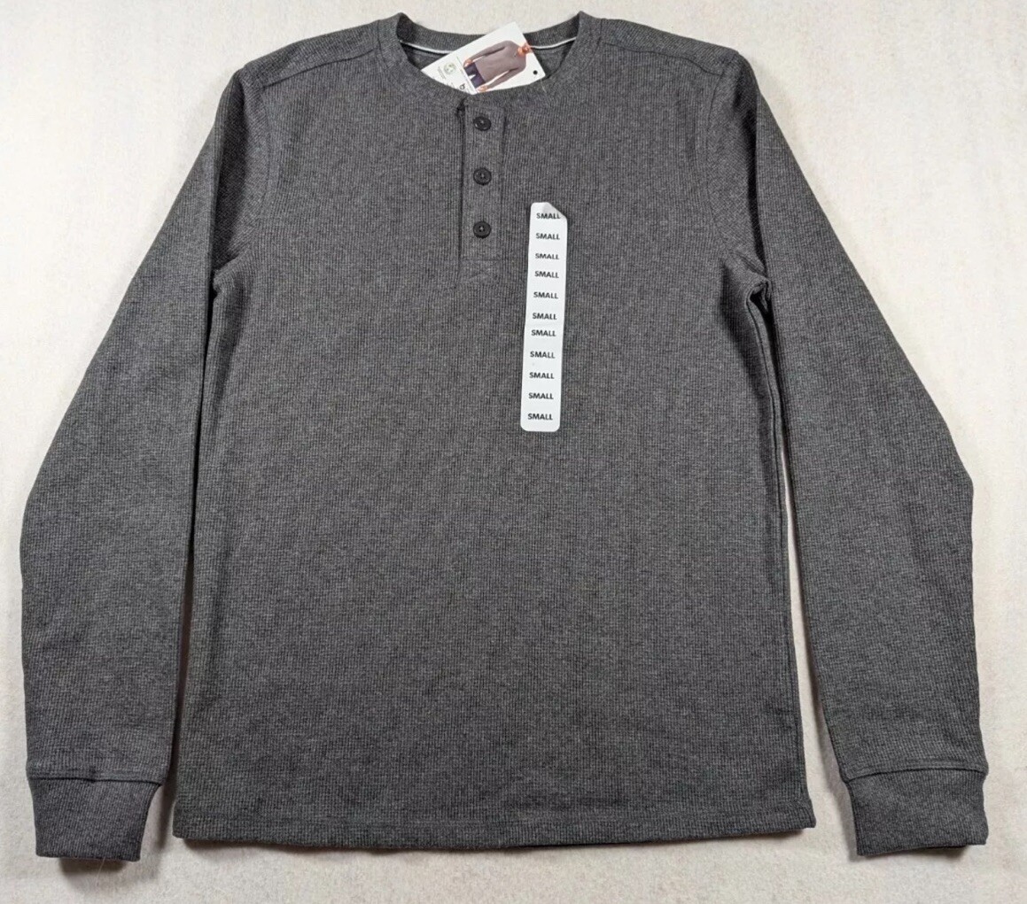 Member's Mark Thermal Henley Men's Gray Waffle Knit Long Sleeve Slim Shirt s S
