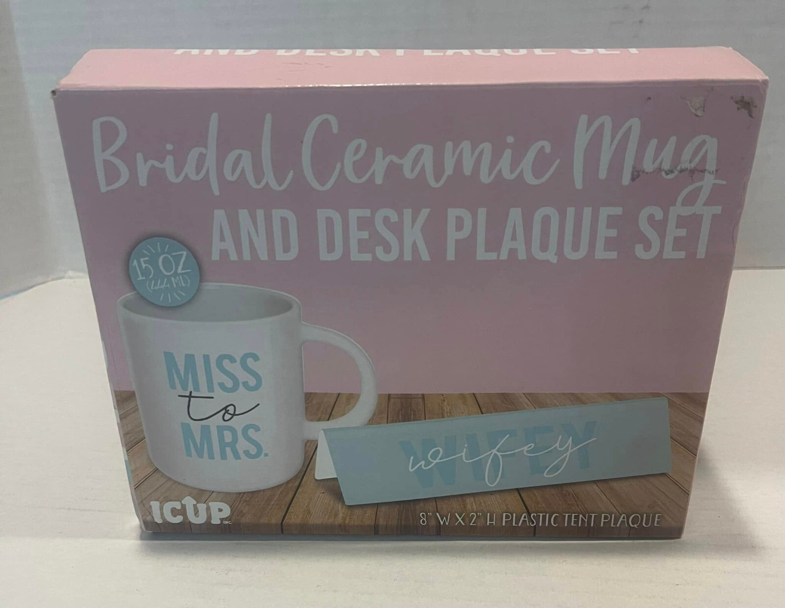 как выглядит "Miss to Mrs." Wifey Bridal Ceramic Mug Desk Plaque Gift Set фото
