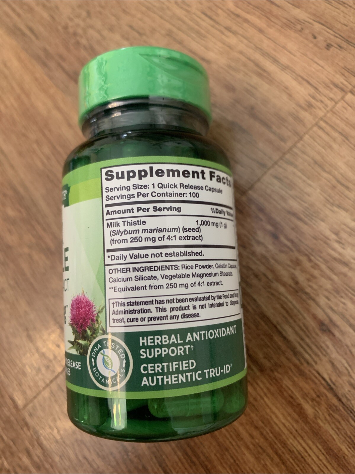 как выглядит Milk Thistle Seed Extract 1000mg, Antioxidant Support 100 Capsules Exp. 9/25 фото