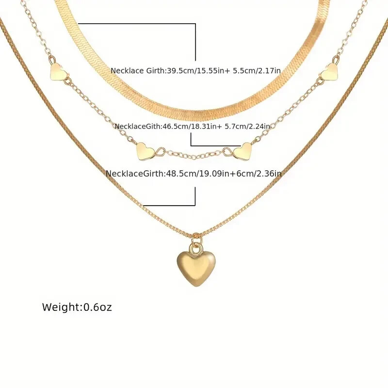 3pcs/set Exquisite Heart-Shaped Pendant Necklace Set For Women