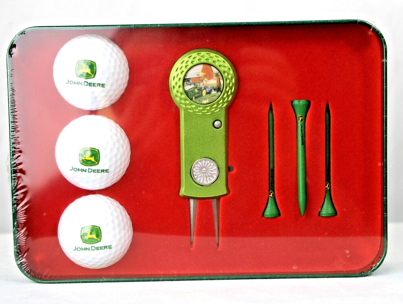 как выглядит Sealed John Deere Logo Golf Balls, Tees, Divot Tool, Collector Tin Set Pre-Owned фото