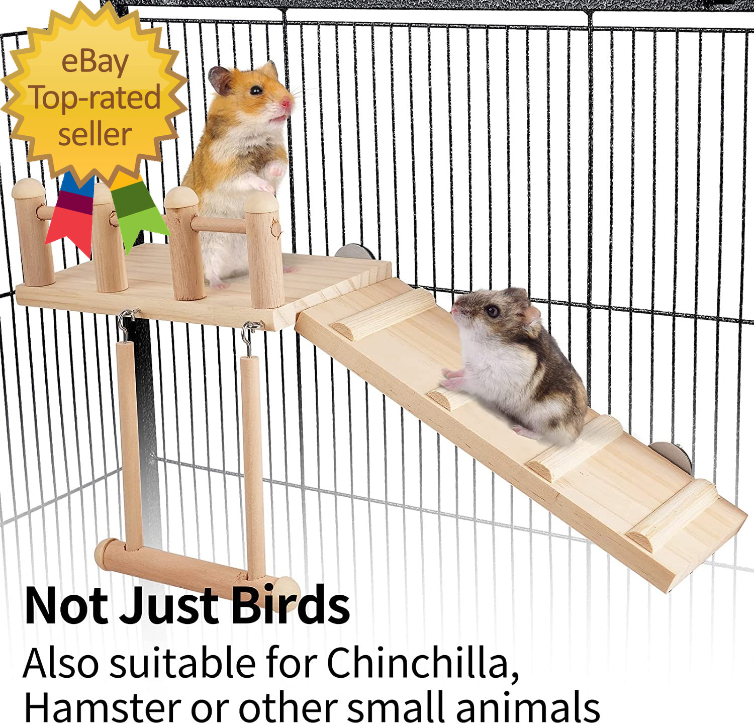 Bird Perches Platform Swing with Climbing Ladder, Parakeet Cage Accessories