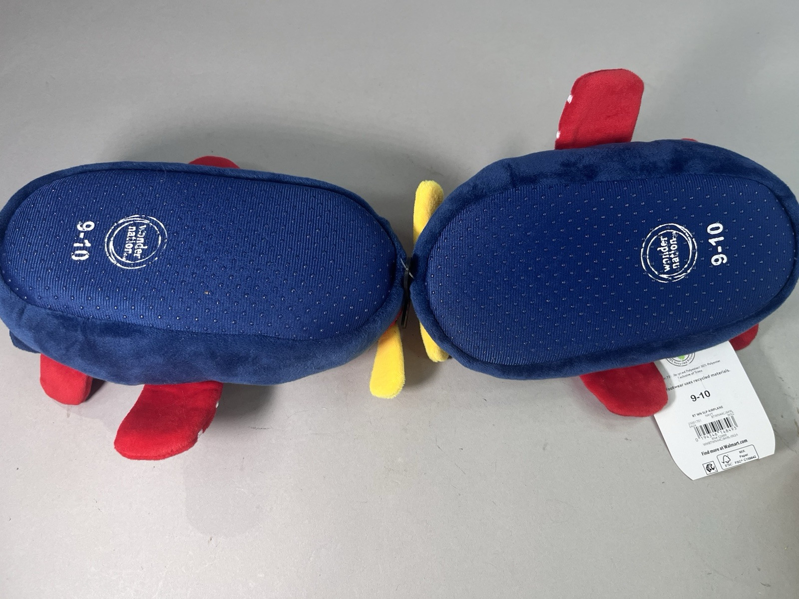 как выглядит Wonder Nation Plush Slippers Toddler Size 9-10 Prop Airplane Blue Red NWT фото
