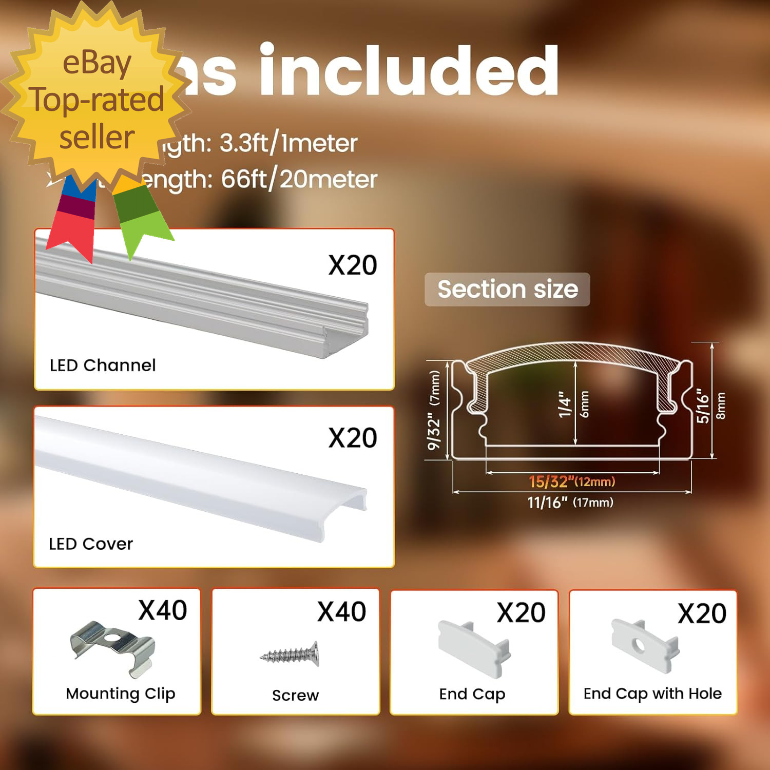 20Pack 3.3FT/1M LED Channel Aluminum U Shape Silver LED Strip Diffuser Channel