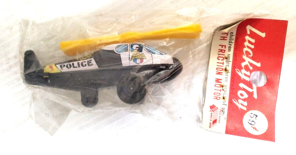 Vintage Lucky Toy Tin Litho Police Helicopter- LOT of 4, Friction, 1970s, Japan