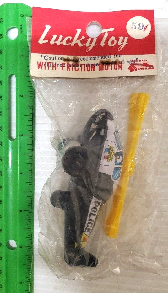 как выглядит Vintage Lucky Toy Tin Litho Police Helicopter- LOT of 4, Friction, 1970s, Japan фото