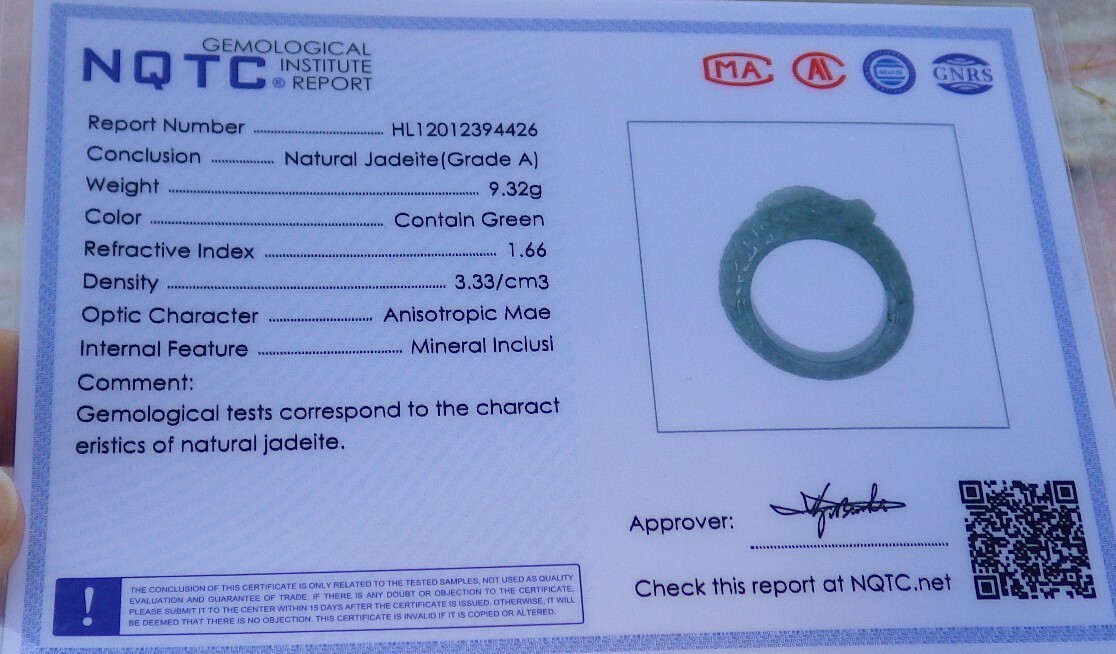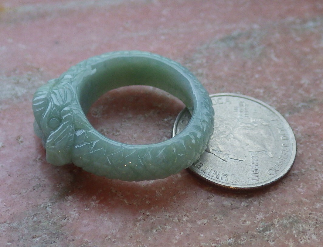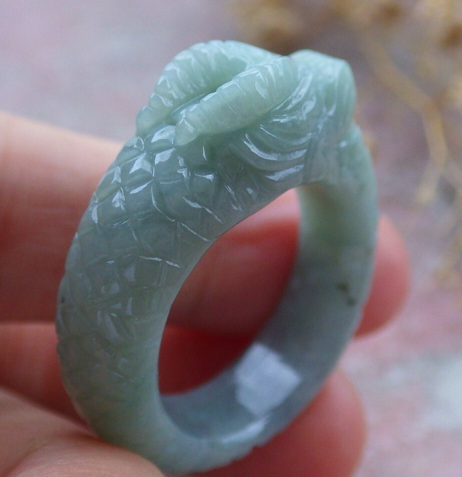 как выглядит Video Certified Green Natural A JADE Jadeite RING Dragon NO.11  107692 фото