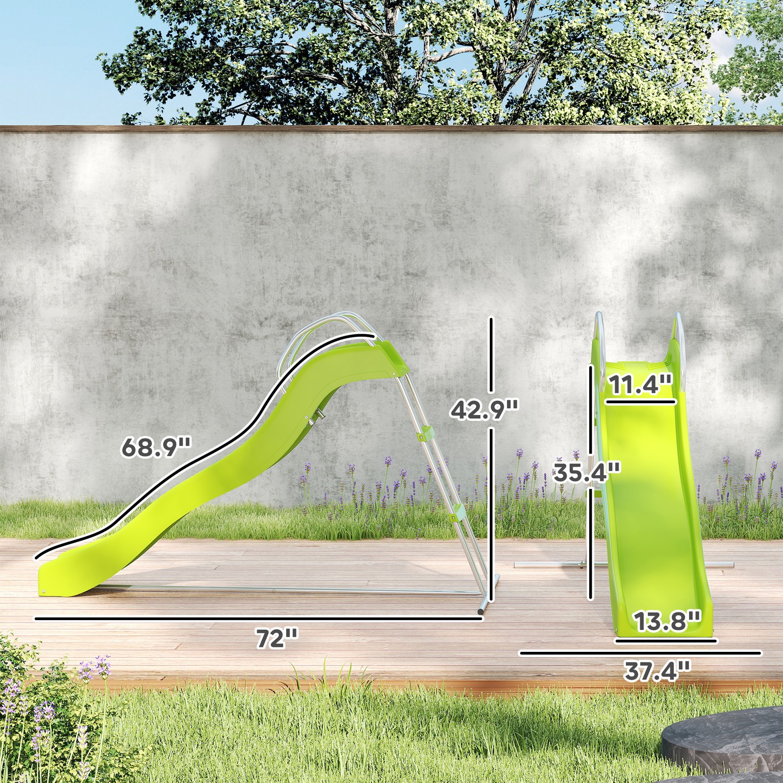 Qaba Outdoor Slide for Kids Ages 3-8, 5.7FT Freestanding Wave Slide, Green