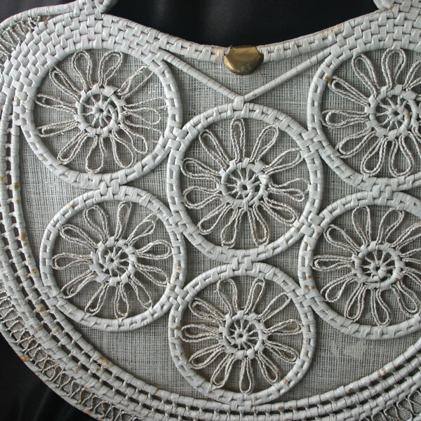 Vintage White Woven Straw Summer Tote 70s Jordan Marsh