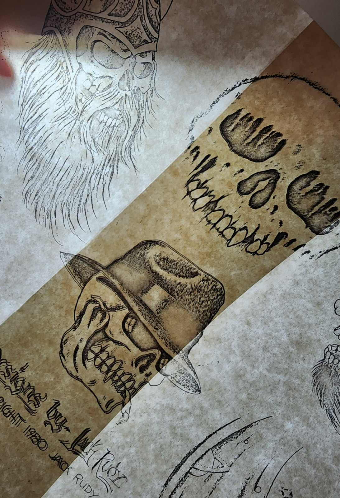 1980 VINTAGE Jack Rudy Traditional Tattoo Flash Sheet Skull Viking Biker