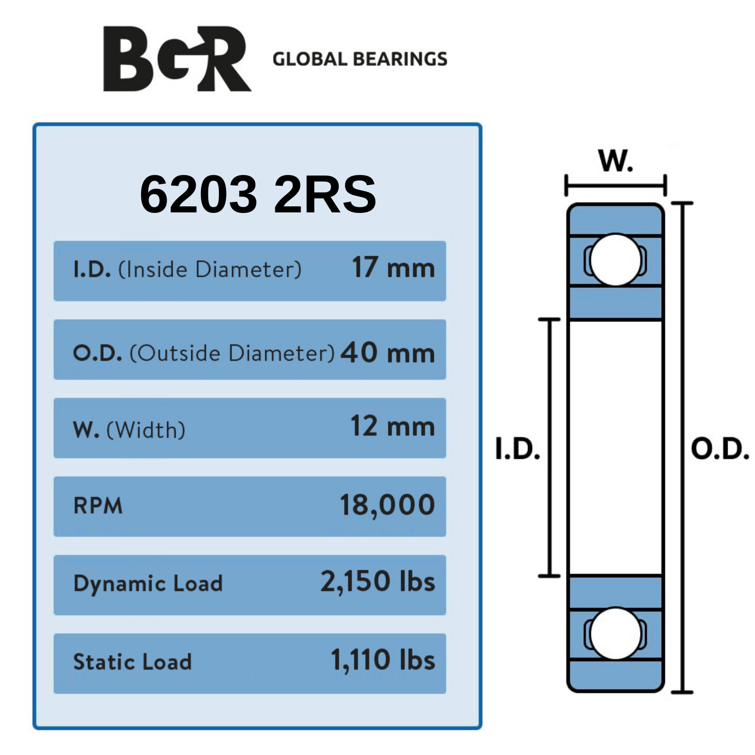 как выглядит BGR 10 pcs 6203 2RS C3 EMQ PREMIUM Double Rubber Sealed Ball Bearing, 17x40x12mm фото