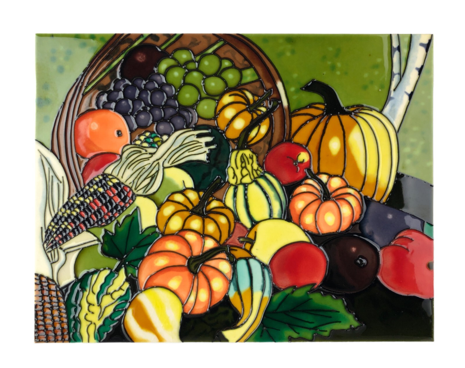 Beautiful Colorful Enamel Plastic Artwork Cornucopia Autumn Fall Fruits