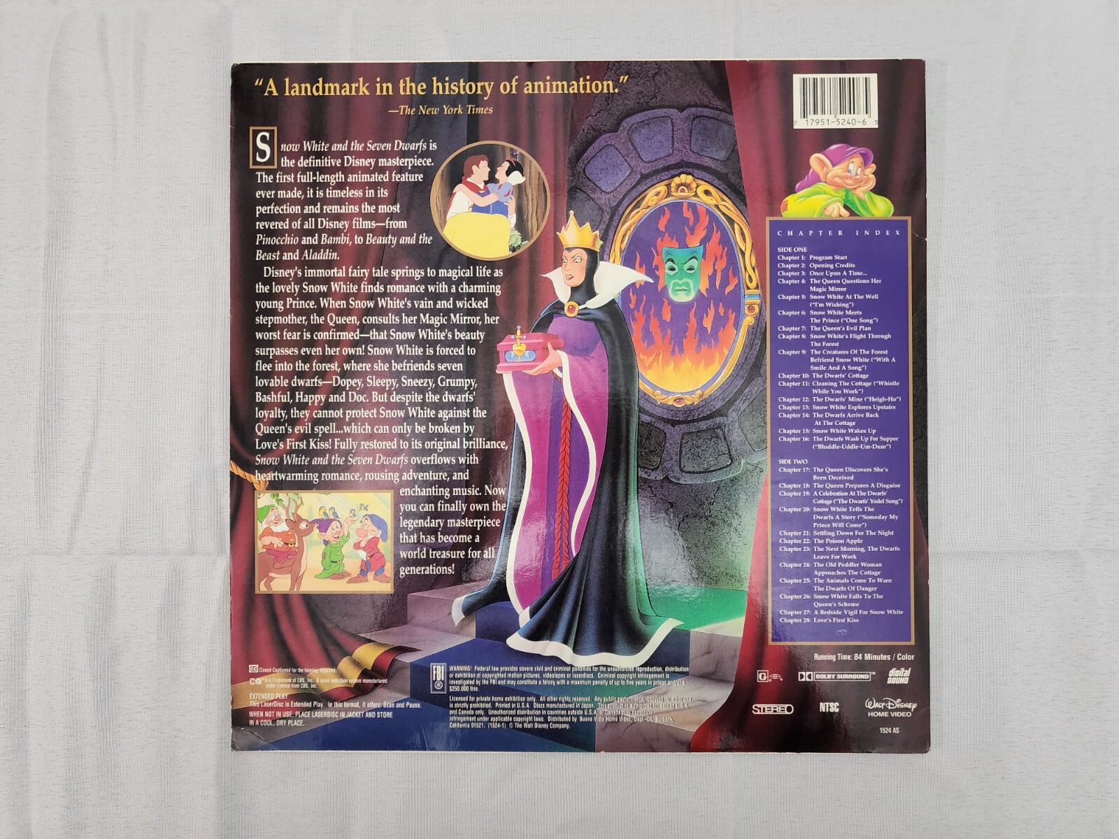 Snow White And The Seven Dwarfs, LaserDisc, Disney Masterpiece, 1524 AS