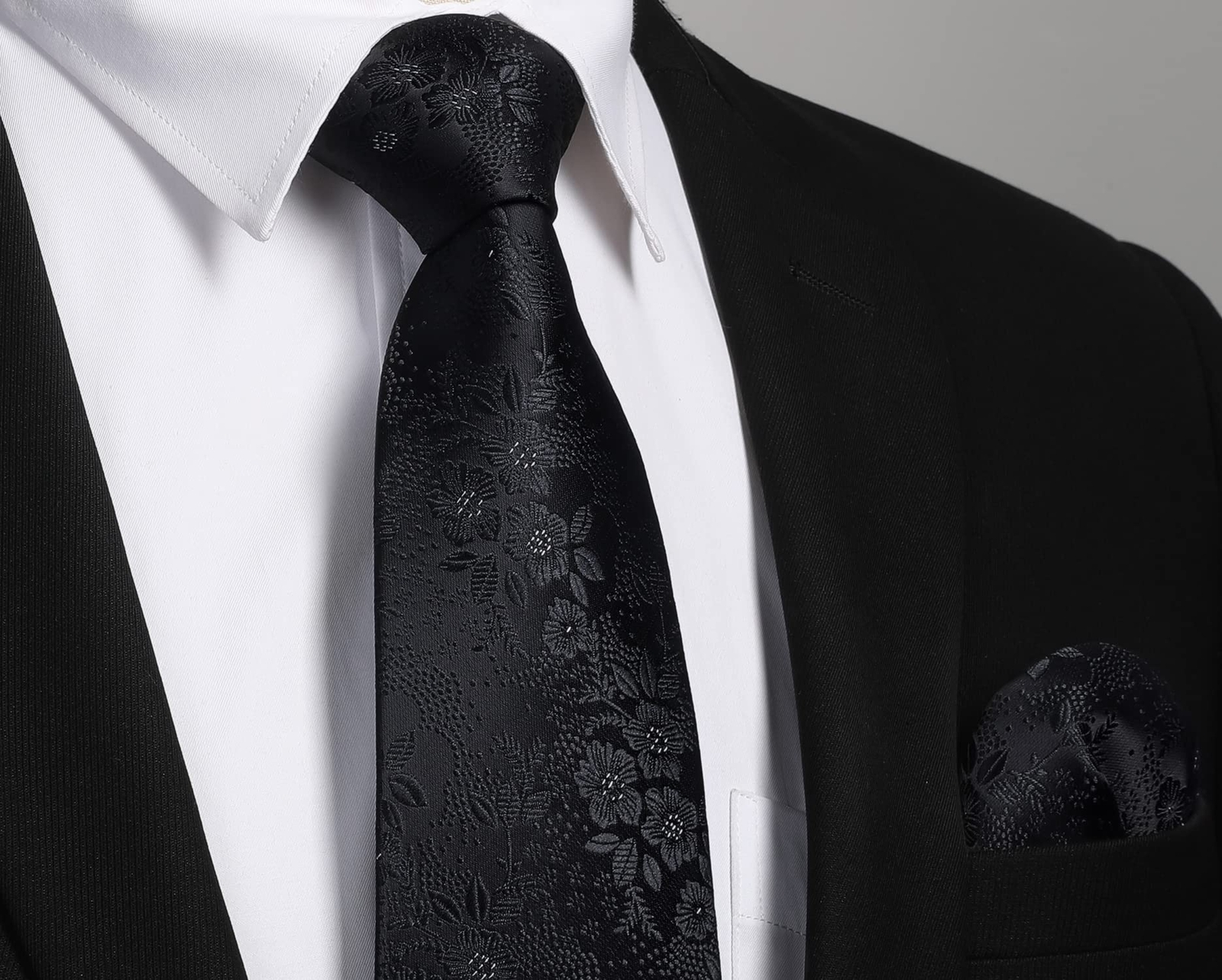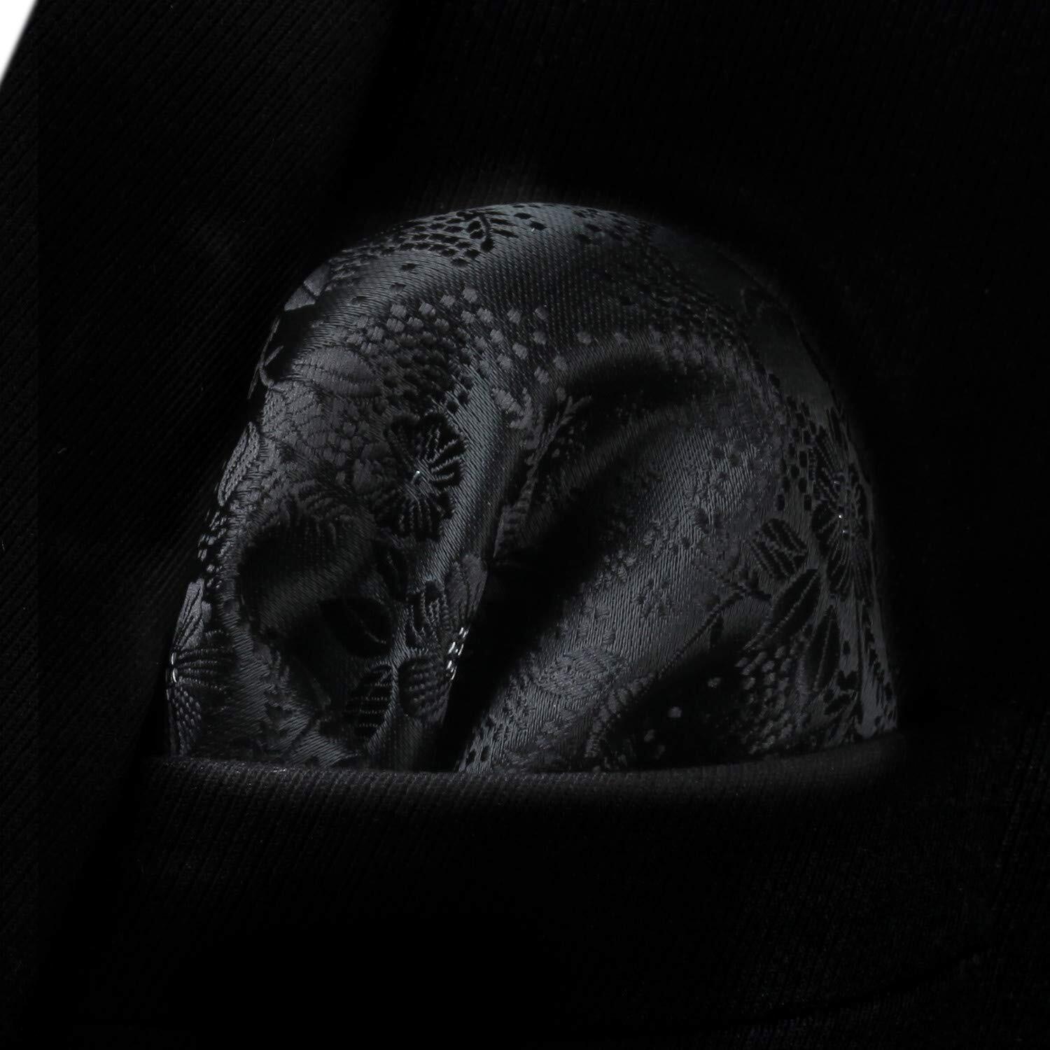 Blacks Ties for Men Woven Classic Necktie Handkerchief Set Formal Floral Tie ...