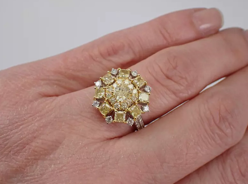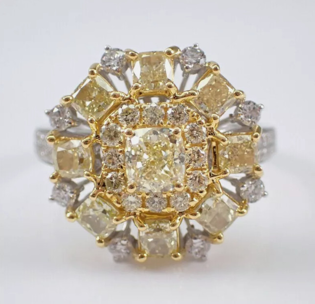 как выглядит 3.50Ct Cushion Cut Citrine Engagement Ring 14K Multi Tone Gold Plated фото
