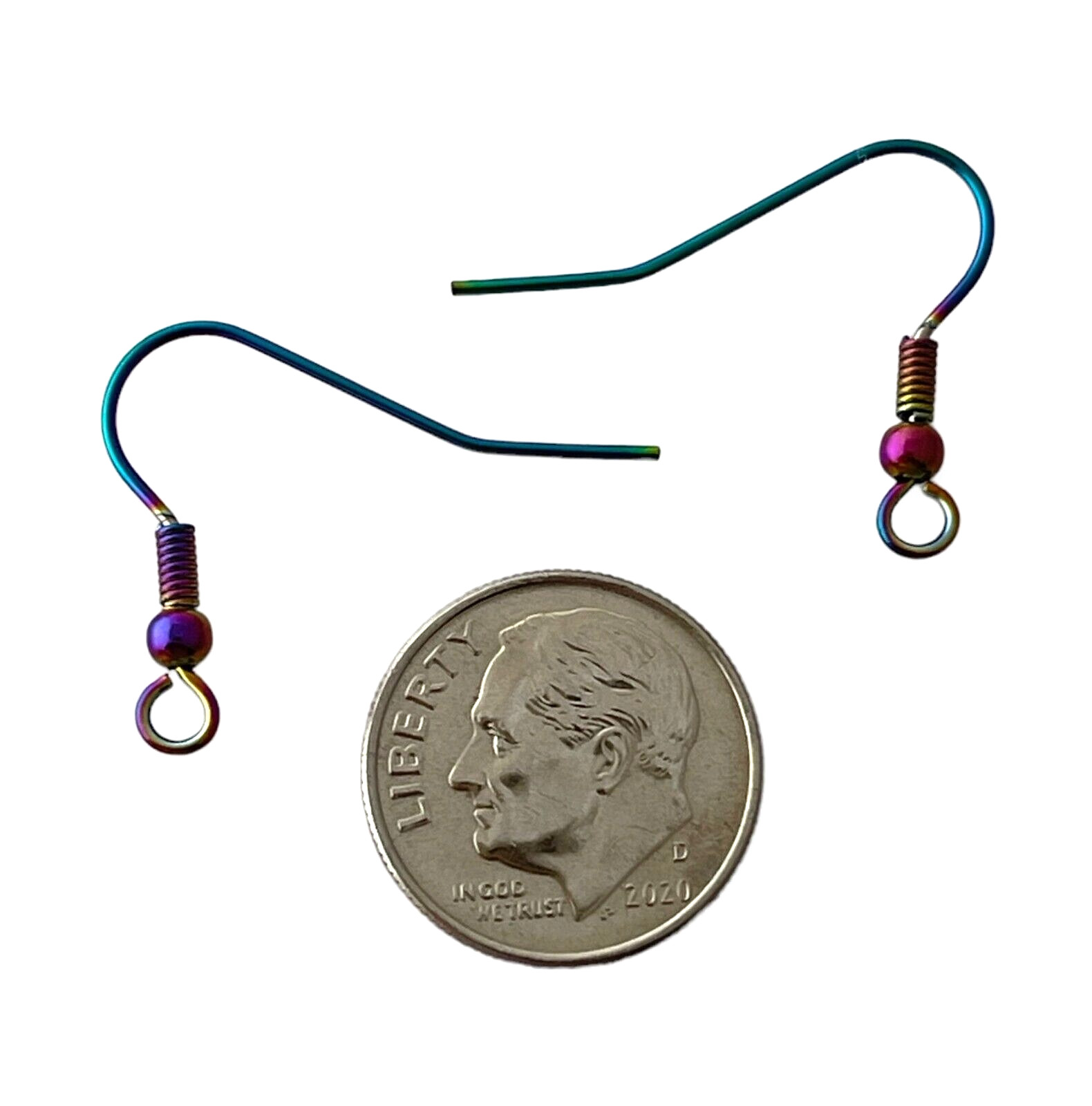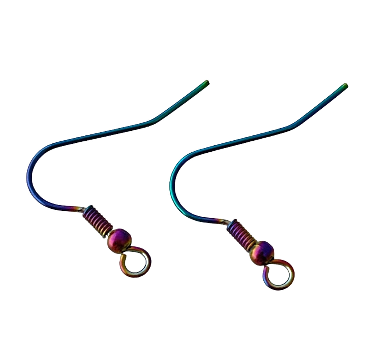 50 Earwires Rainbow Electroplated Stainless Steel Earring Bead Hooks Wires