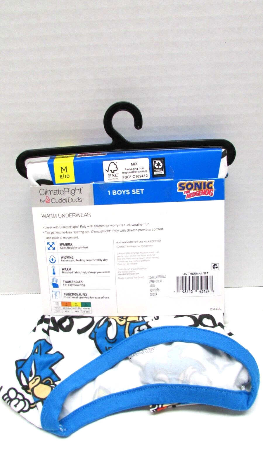 Boys ClimateRight by Cuddl Duds Sonic Thermal Underwear Set sz M 8-10