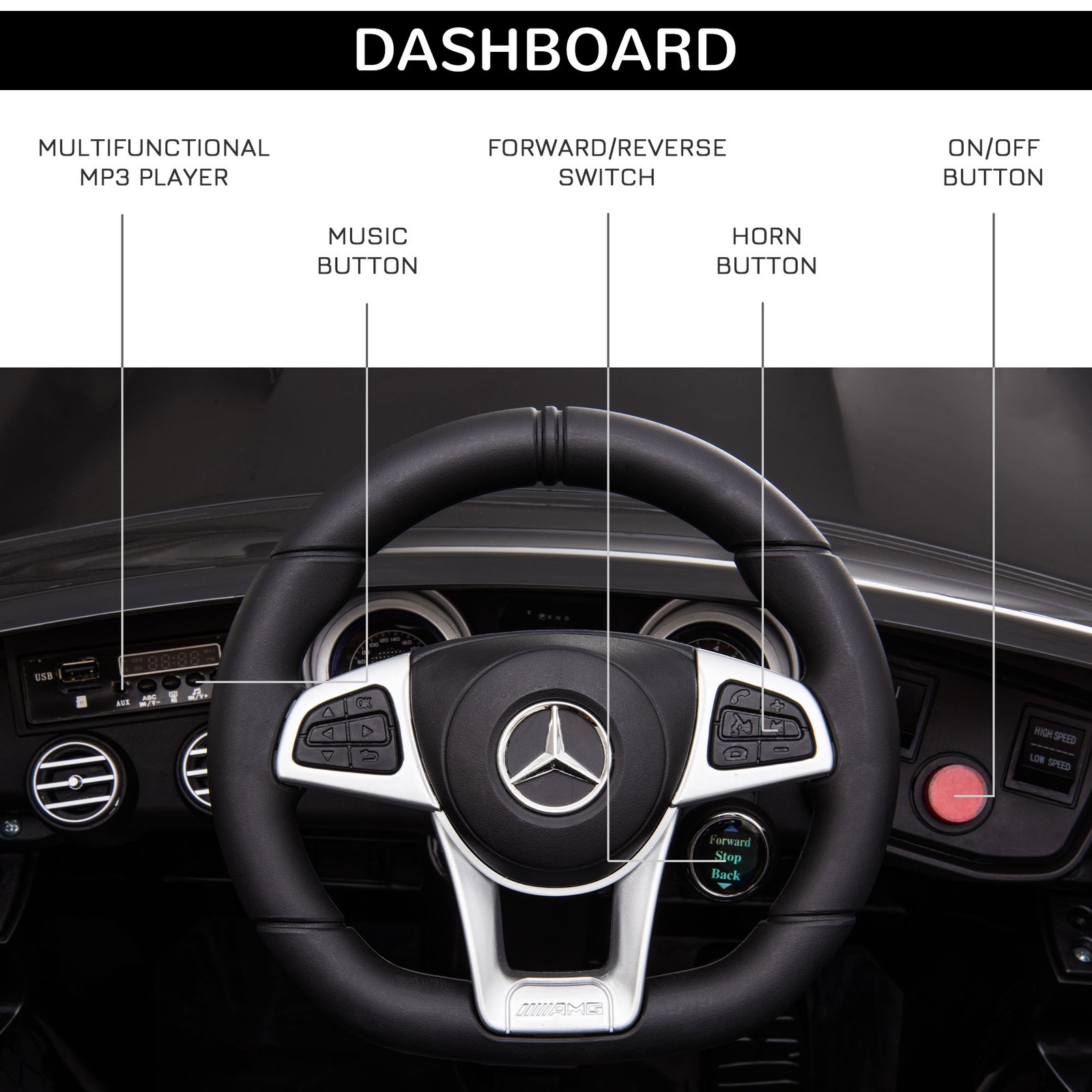 Licensed Mercedez-Benz 12V Kids Ride-On Car with Remote Control, Music, Light