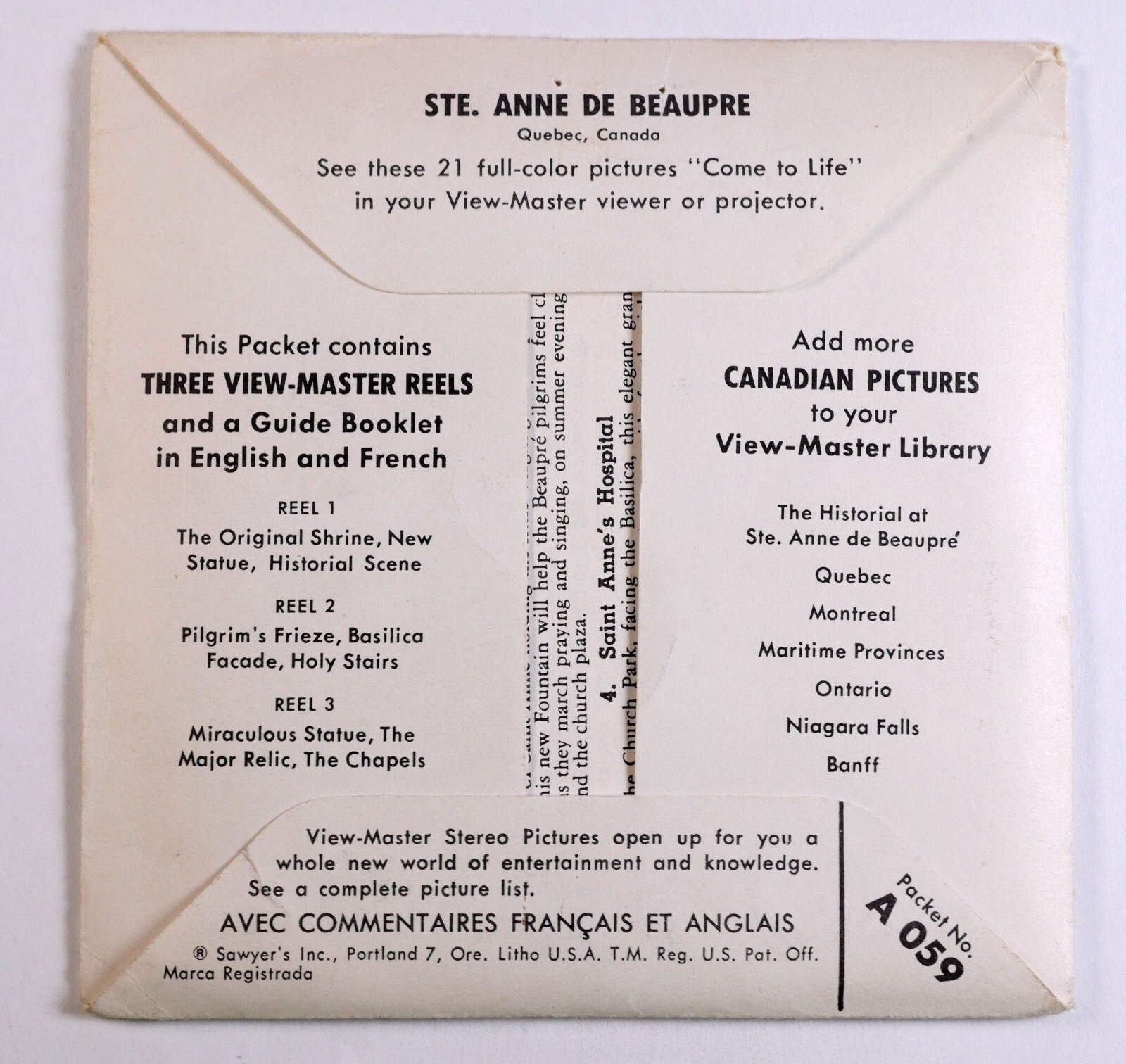 • View-Master Ste Anne De Beaupre Canada 3 reel packet/booklet A059