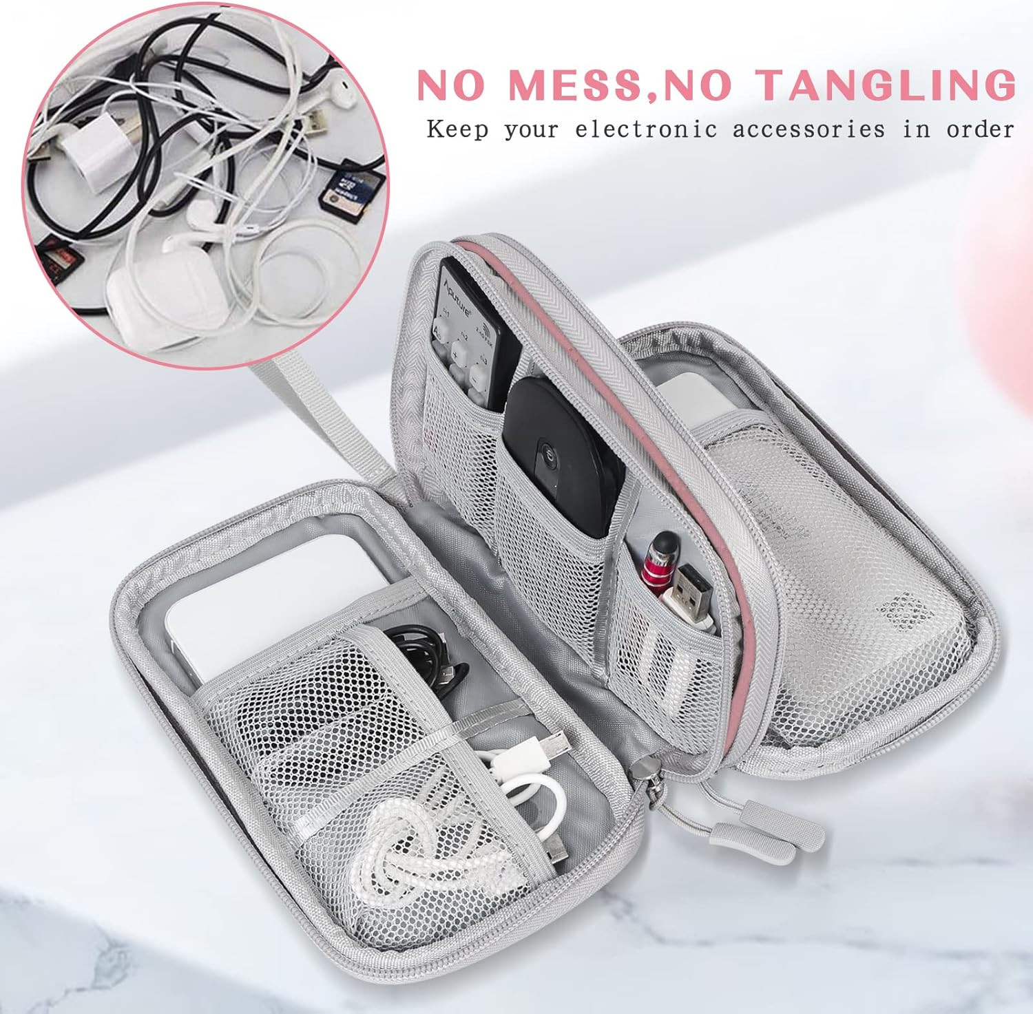 FYY Electronic Organizer, Travel Cable Organizer Bag Pouch Pink-Pattern
