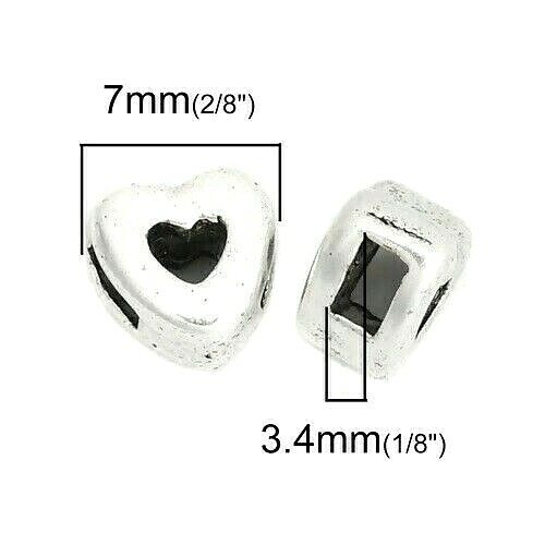 20 Antiqued Tibetan Silver 7mm Open Cutout Heart Rectangle Hole Spacer Beads