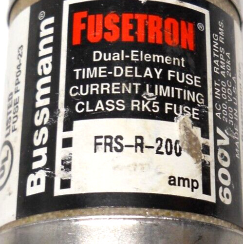 LOT OF 2 NEW BUSSMANN FUSETRON FRS-R-200 TIME DELAY FUSE 200A 600V