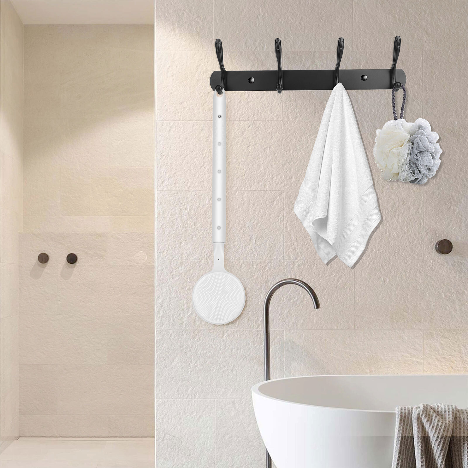 Adjustable Silicone Back Scrubber for Shower, 24 Long Handle Bath Body Brush
