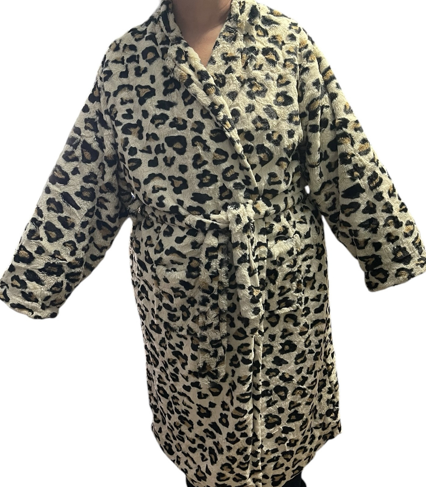 Plush Leopard Print Minky Couture Robe M/L MC Lined Luxurious Below Knee