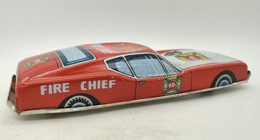 Vintage Tin Litho Friction Fire Chief, lic plate 7237, NOS, 1960s or 70s, Japan