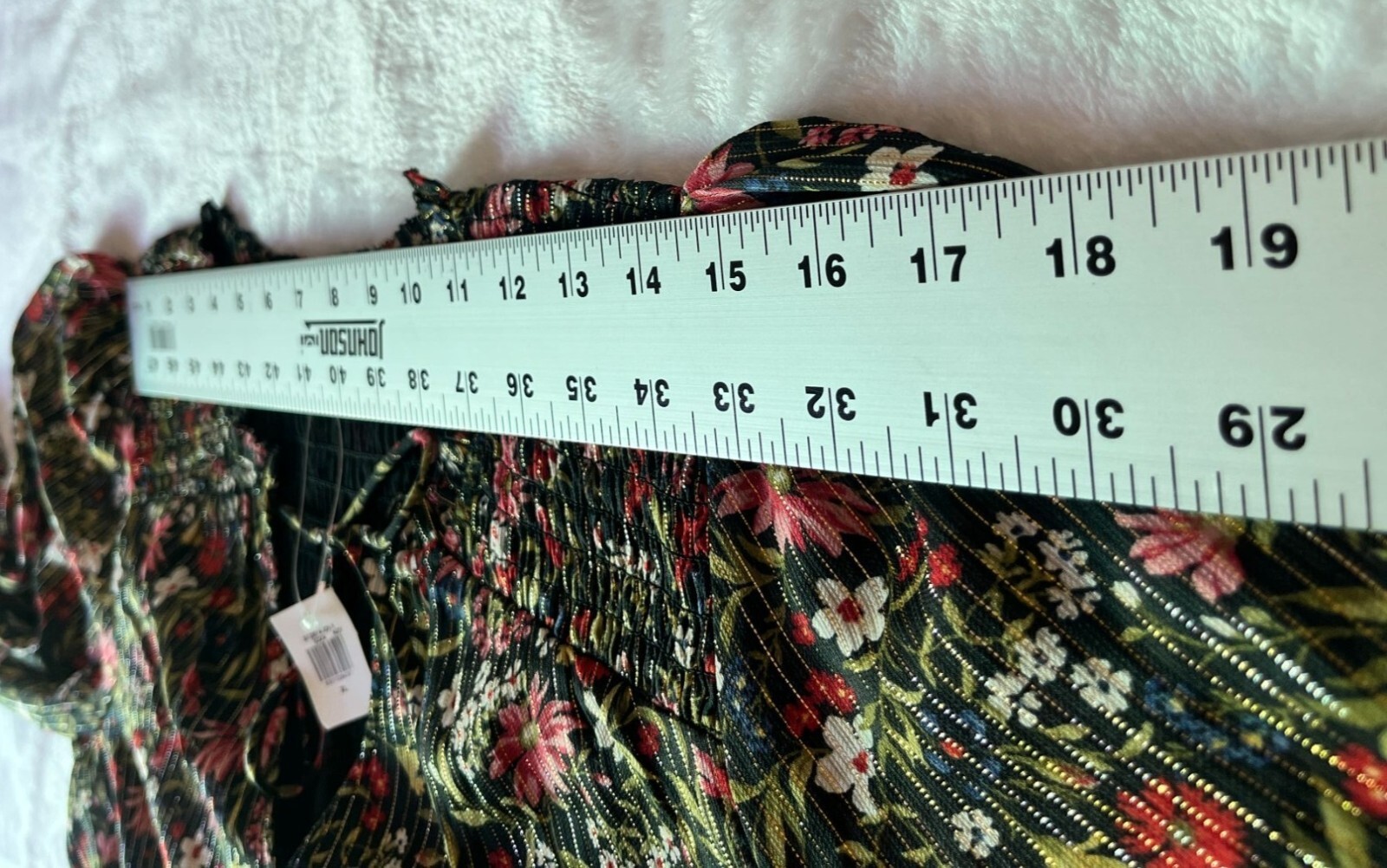 Old Navy Womens Black Floral Long Sleeve Smocked Blouse Top XL Tie-Neck Boho New