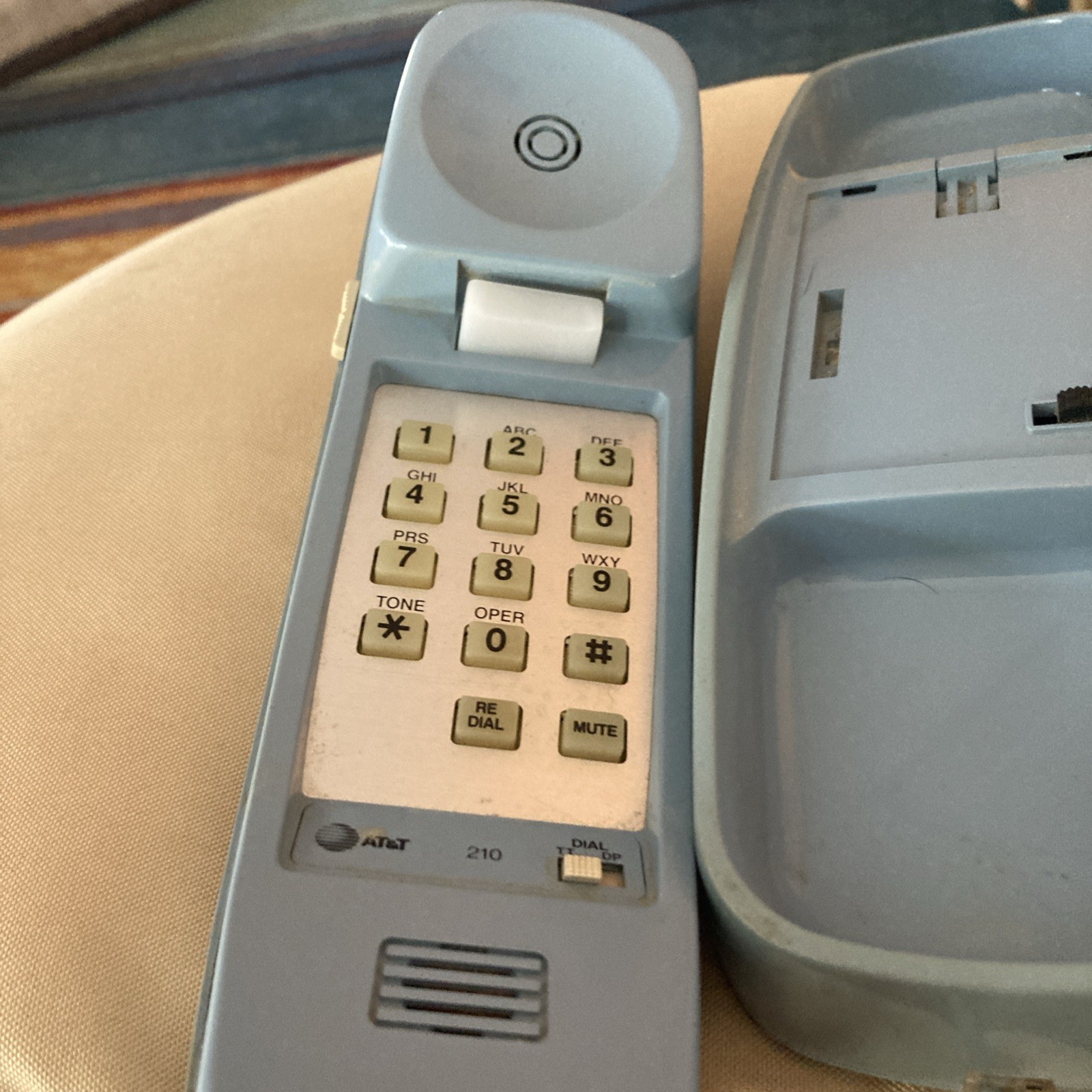 Vintage AT T Trimline 210 Touch Tone Push Button Wall Desk Cord Phone BLUE Prop