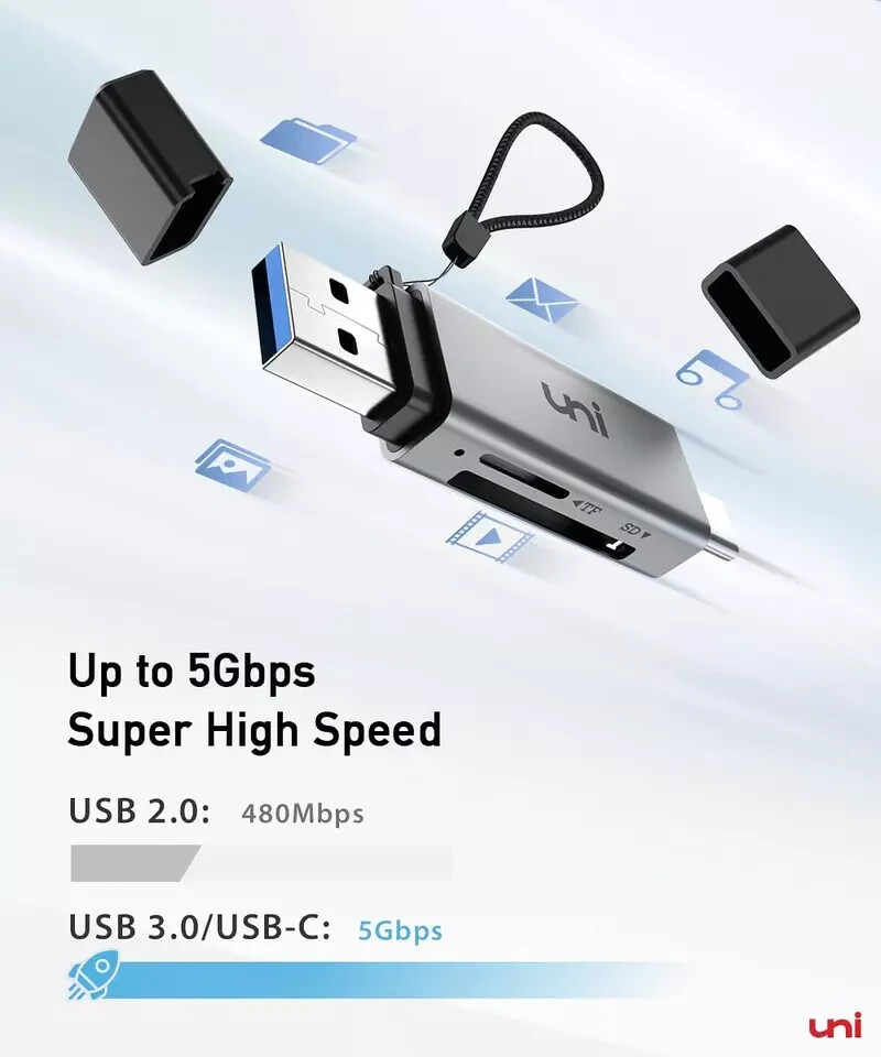 Uni SD Card Reader, High-Speed USB C to Micro SD Card Adapter USB 3.0 Dual Slots
