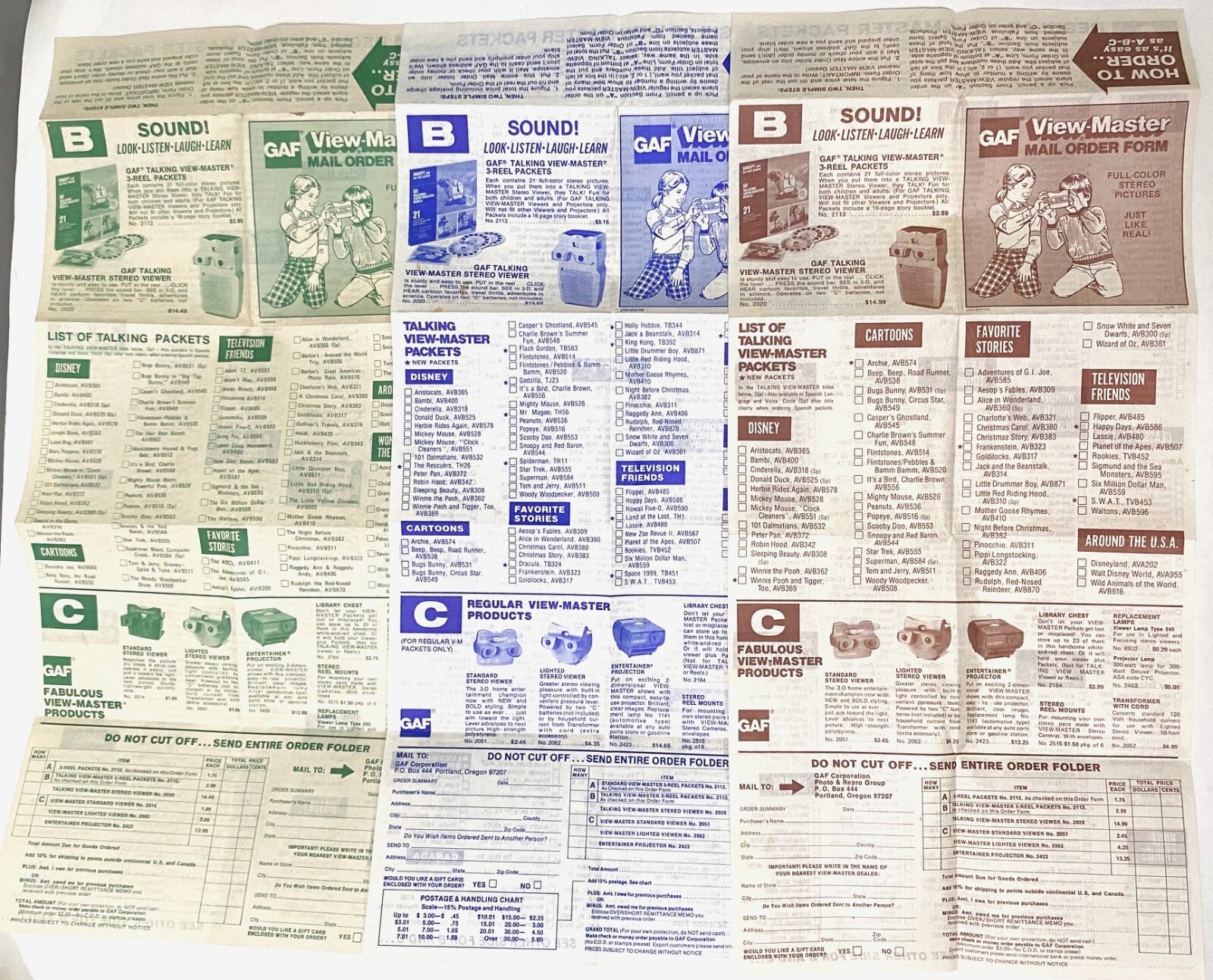 1950s-70s View-Master Paper Lot Sawyer's, GAF Order Forms Booklets Reel Packets