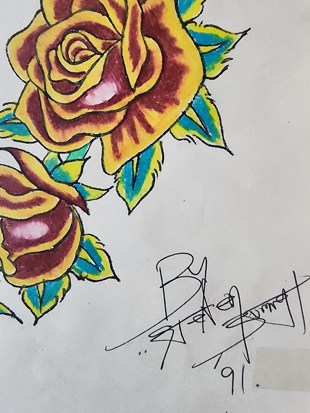 как выглядит ORIGINAL HAND DRAWN, COLORED, Vintage, Traditional Tattoo Flash Sheet, Roses фото