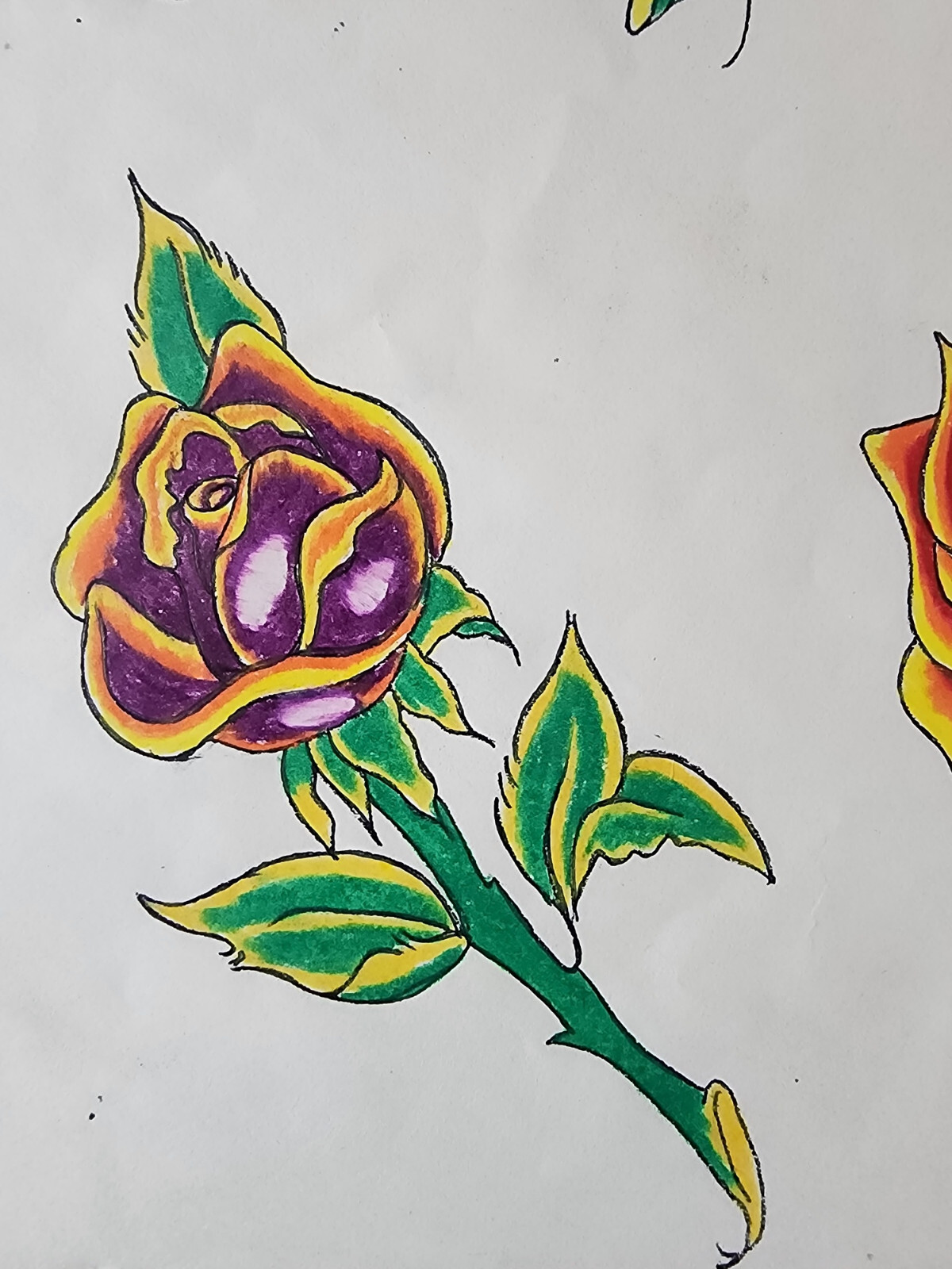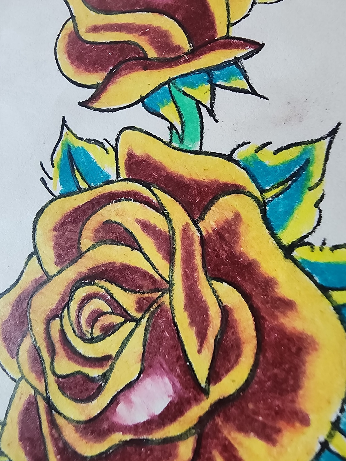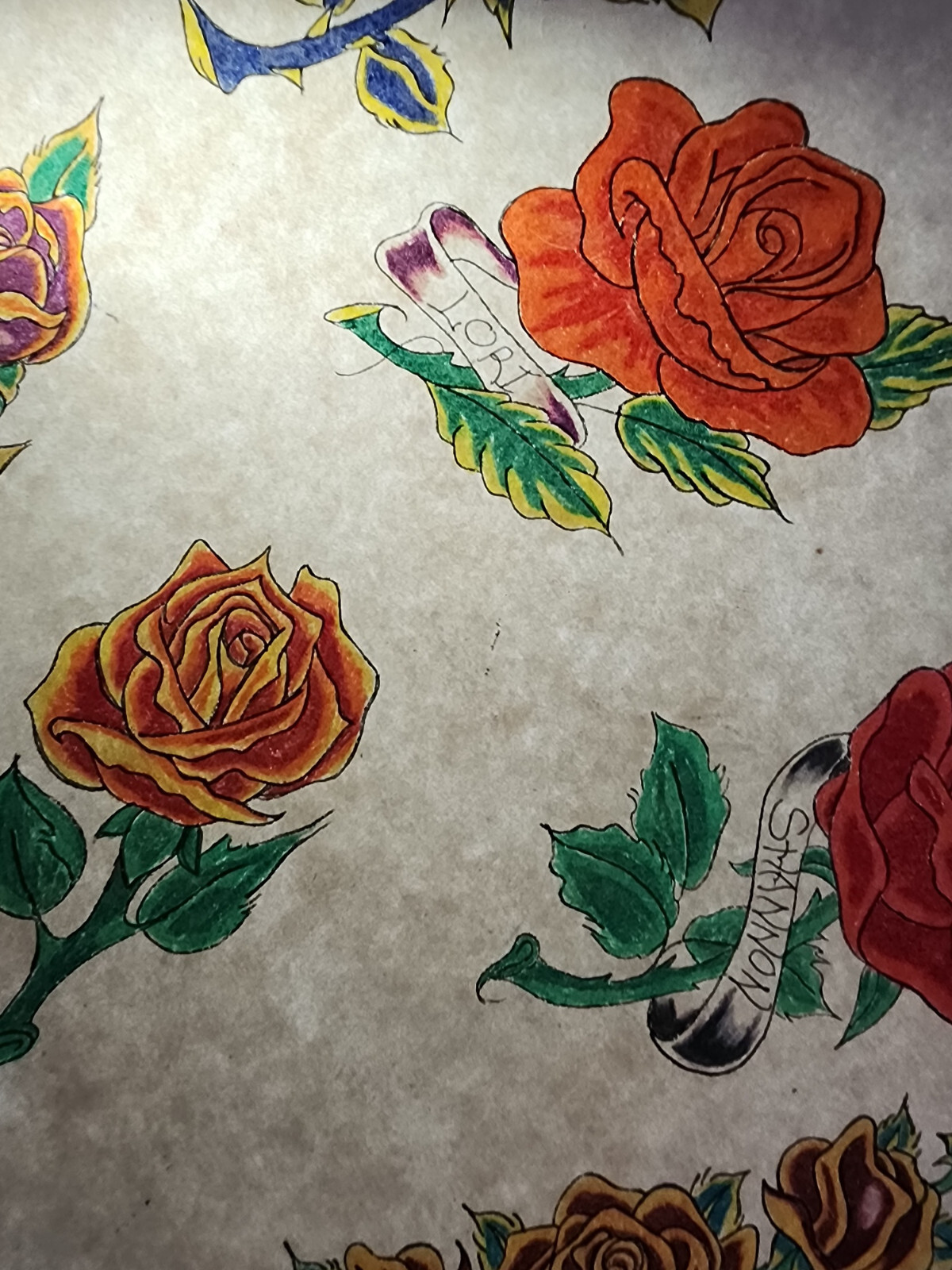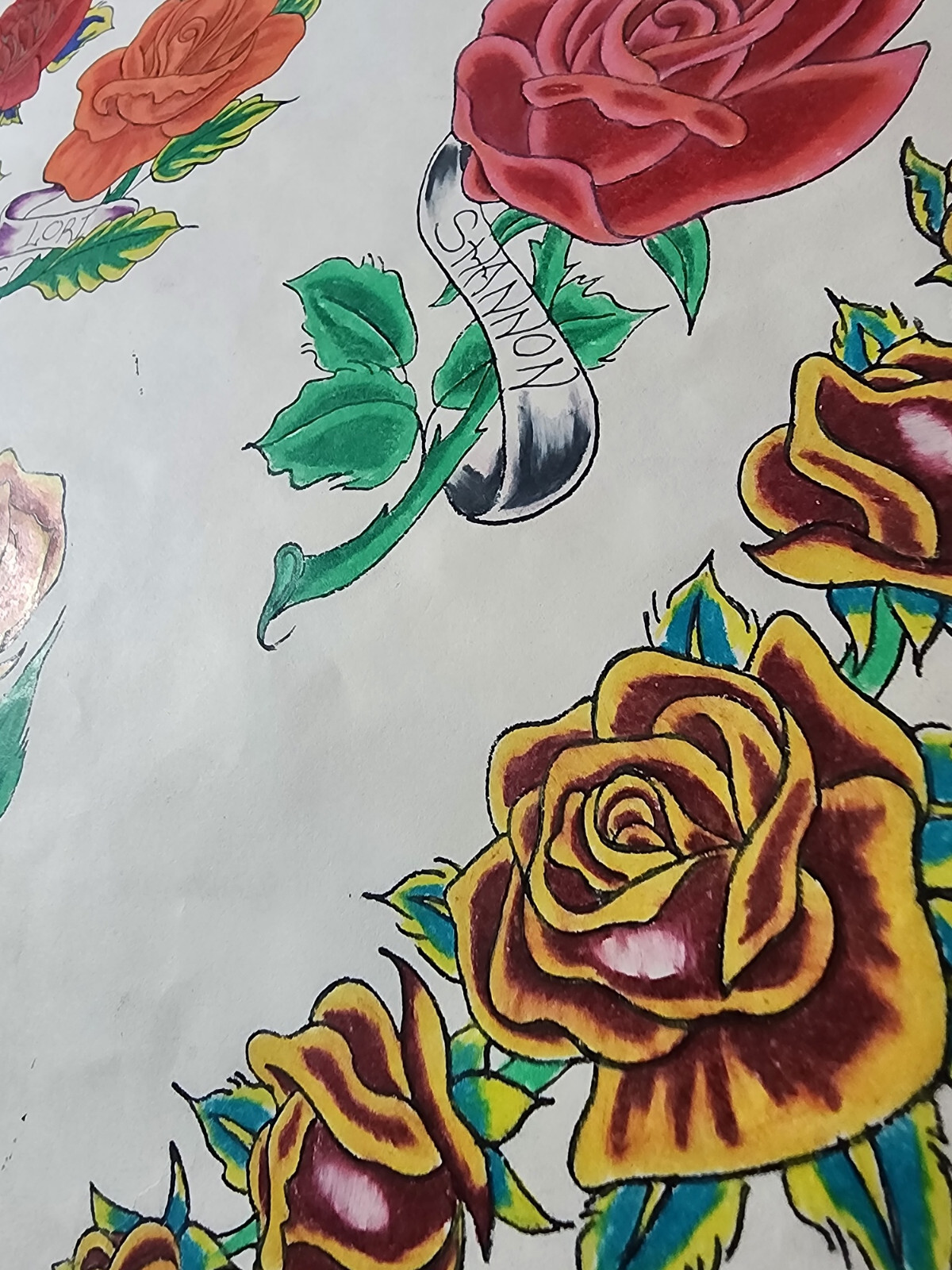 ORIGINAL HAND DRAWN, COLORED, Vintage, Traditional Tattoo Flash Sheet, Roses