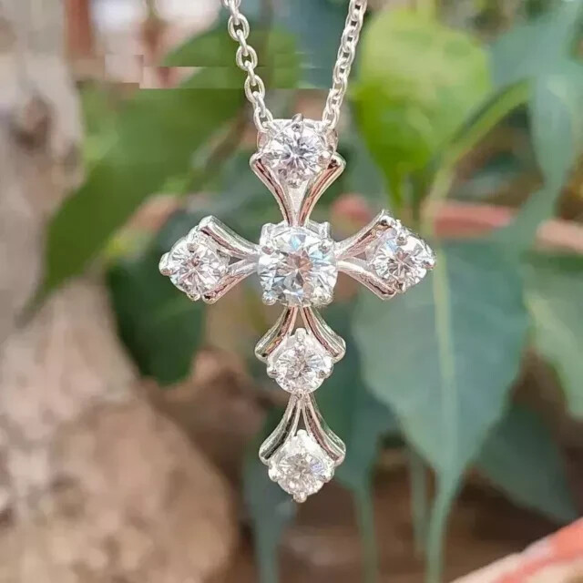 как выглядит Lab Created Diamond Round Cut 2Ct Womens Beauty Pendant 14K White Gold Plated фото