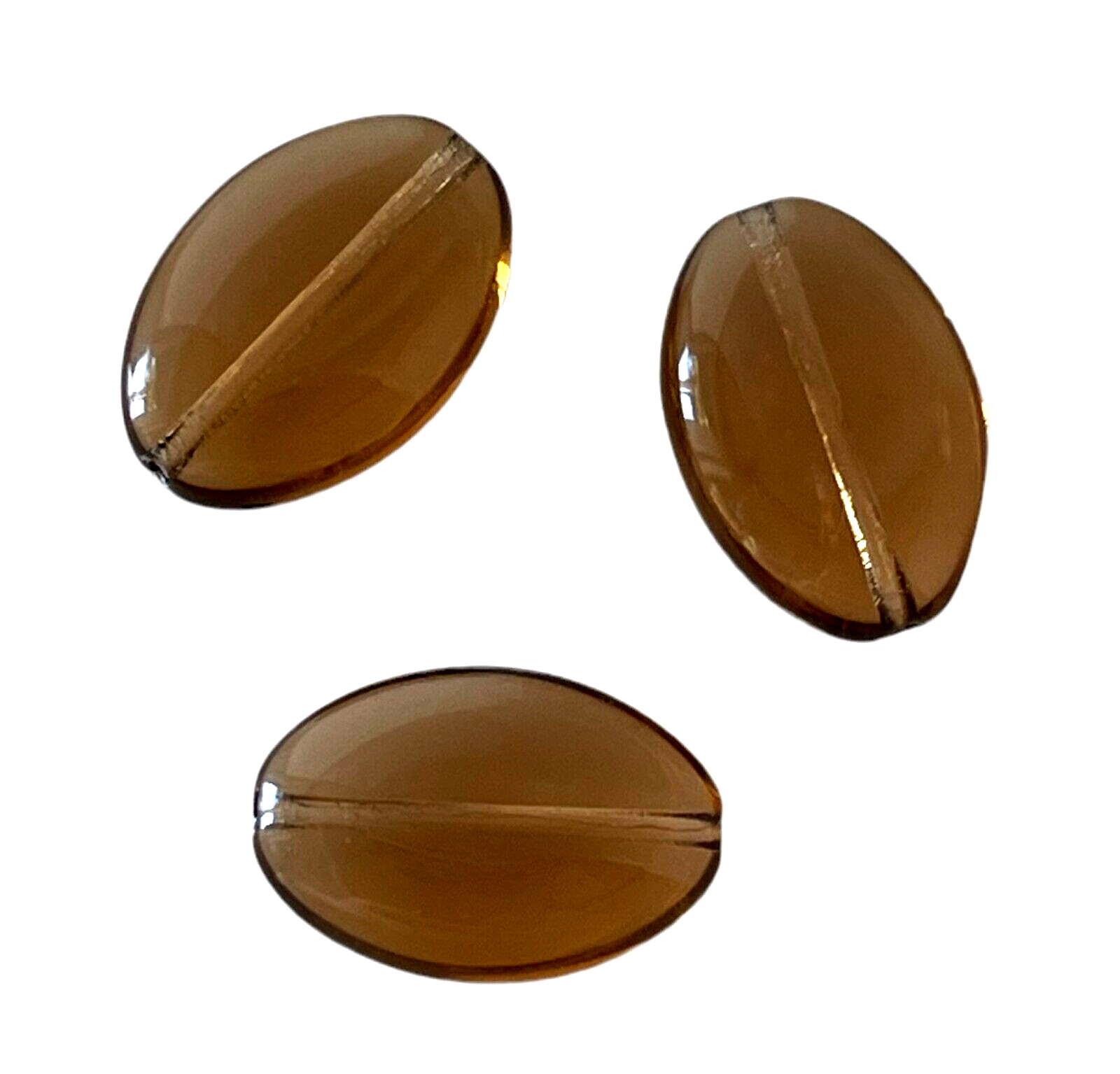 25 Loose Beads Smoky Topaz Imported Czech Boho Glass 16x11mm Flat Oval Craft Art